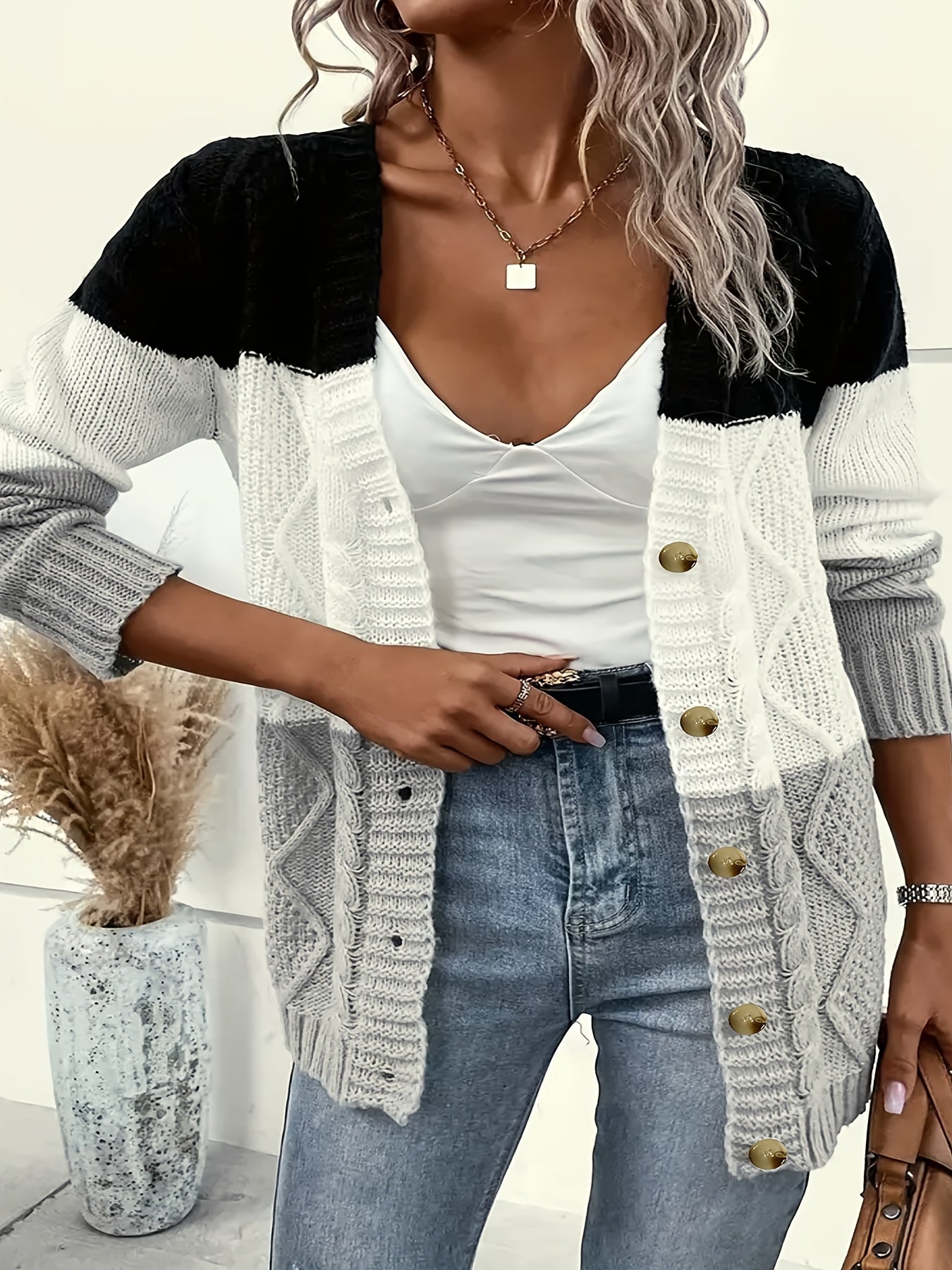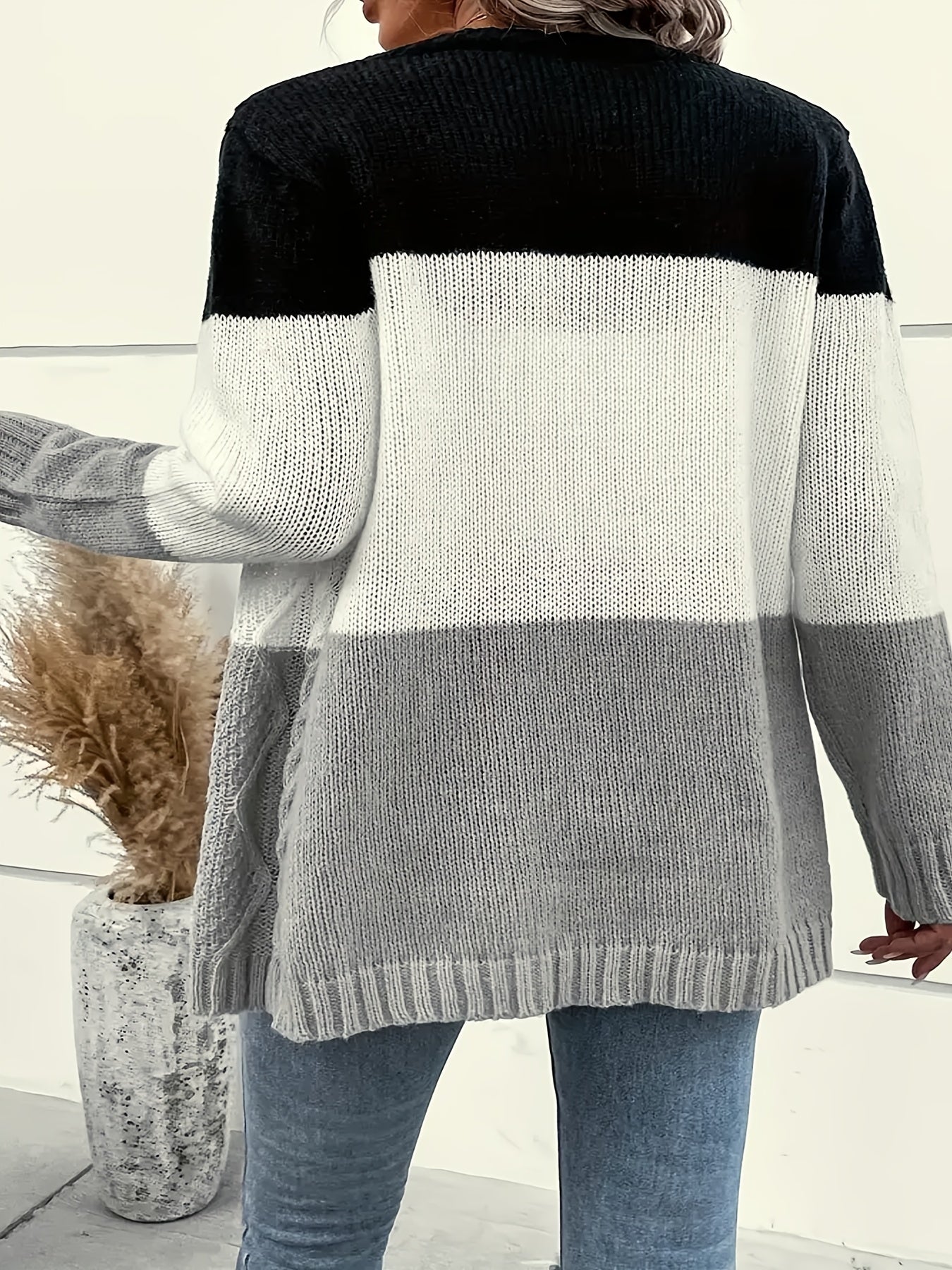 Plus o'lcham ayollar uchun rang-blok kardigan uzun qolli ochiq oldi sviter