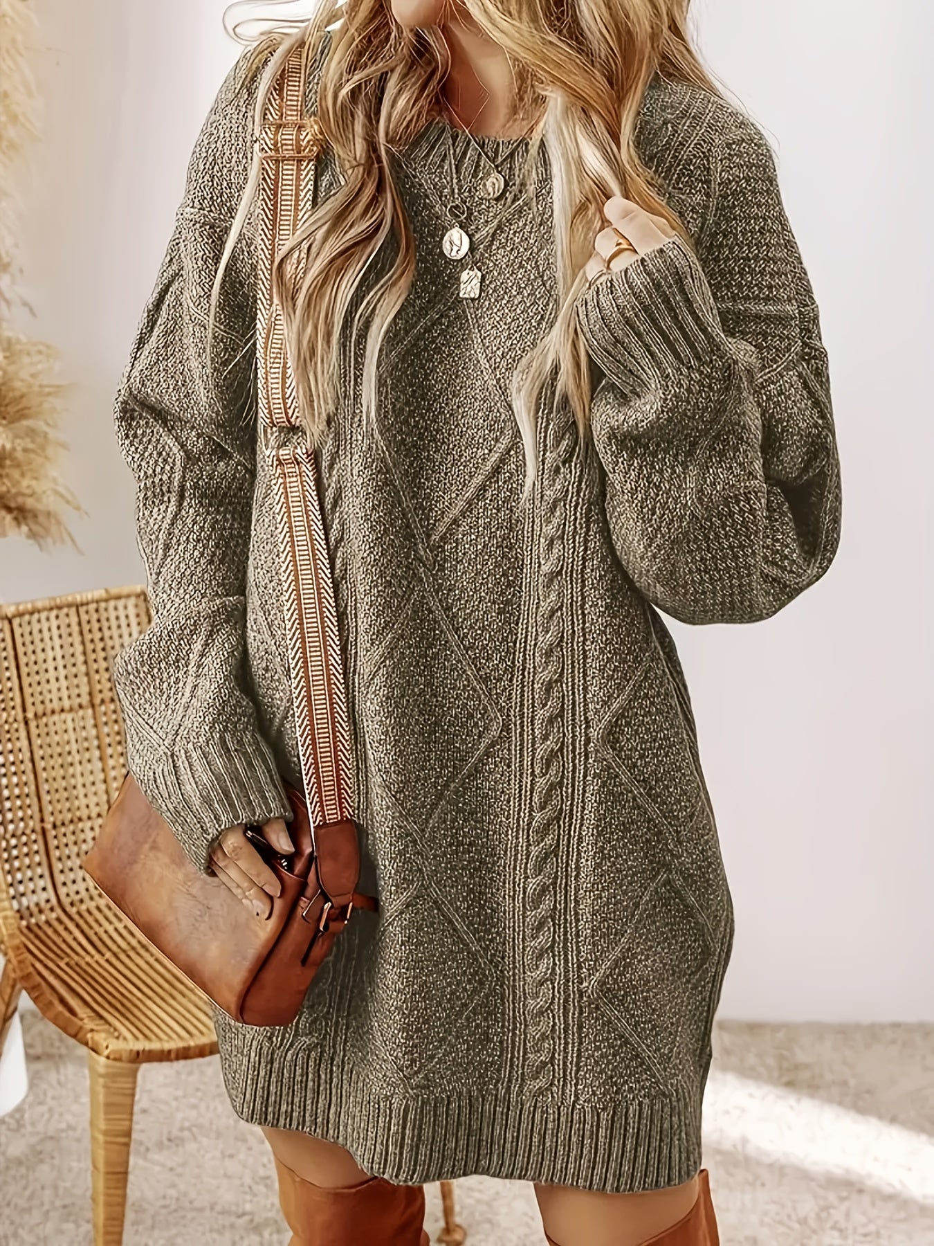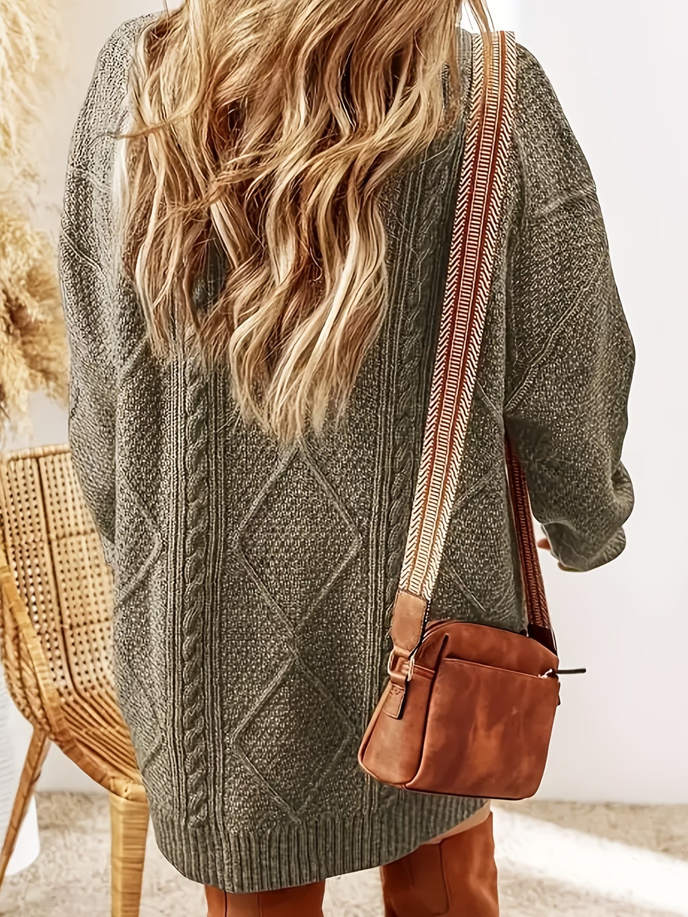 Plus o'lcham ayollar uchun qulay kabel ipli sviter, uzun qolli, bej, kuz-qish