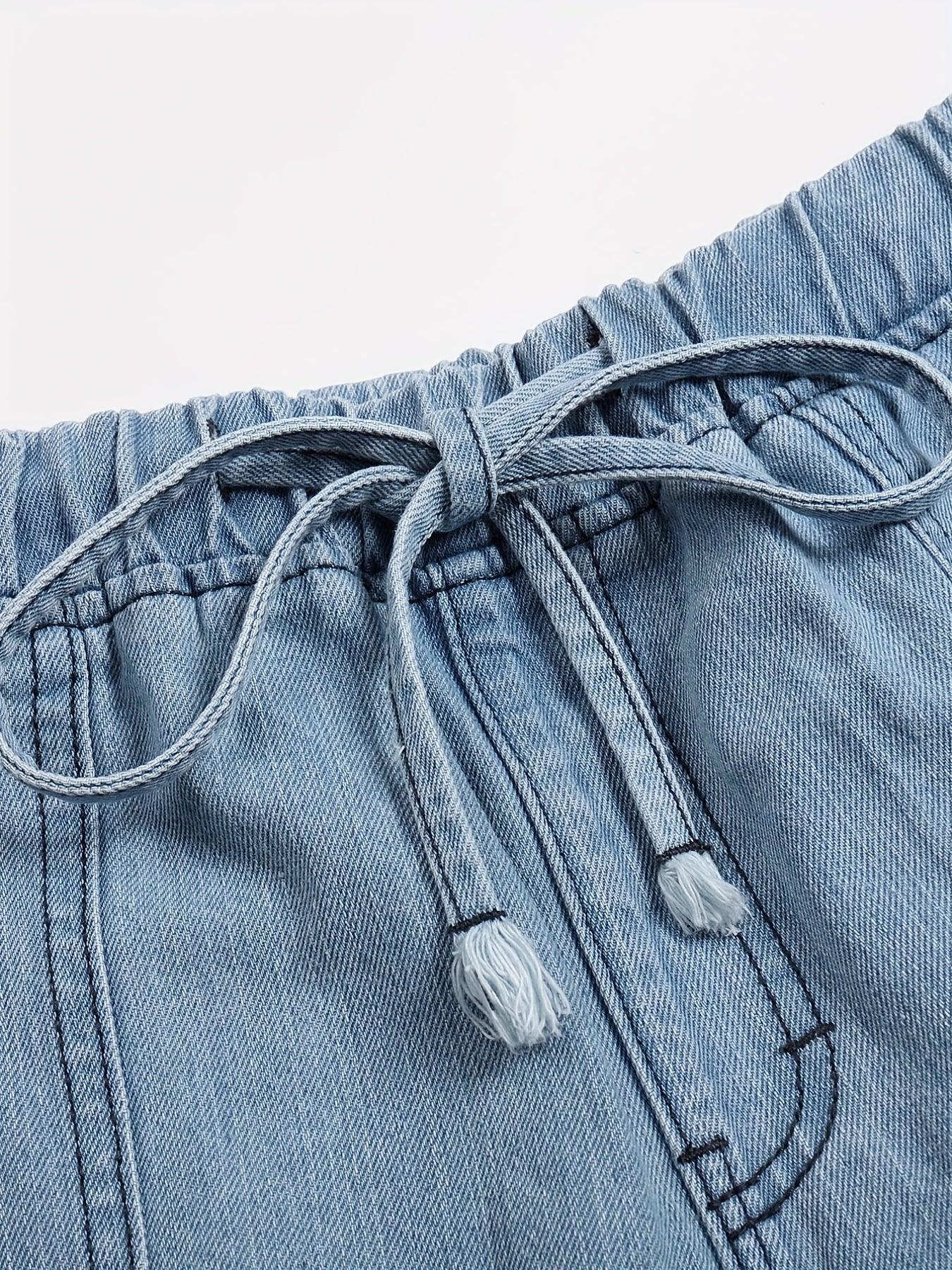 Plus Size Women's Denim Shorts Casual Solid Elastic Waist Drawstring