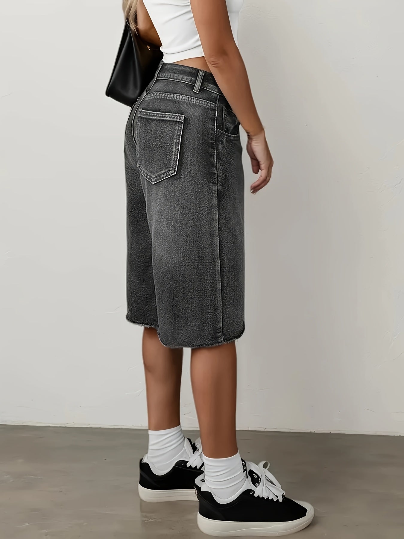 Plus Size Women's Denim Shorts Water-Washed Blue Frayed Hem Casual