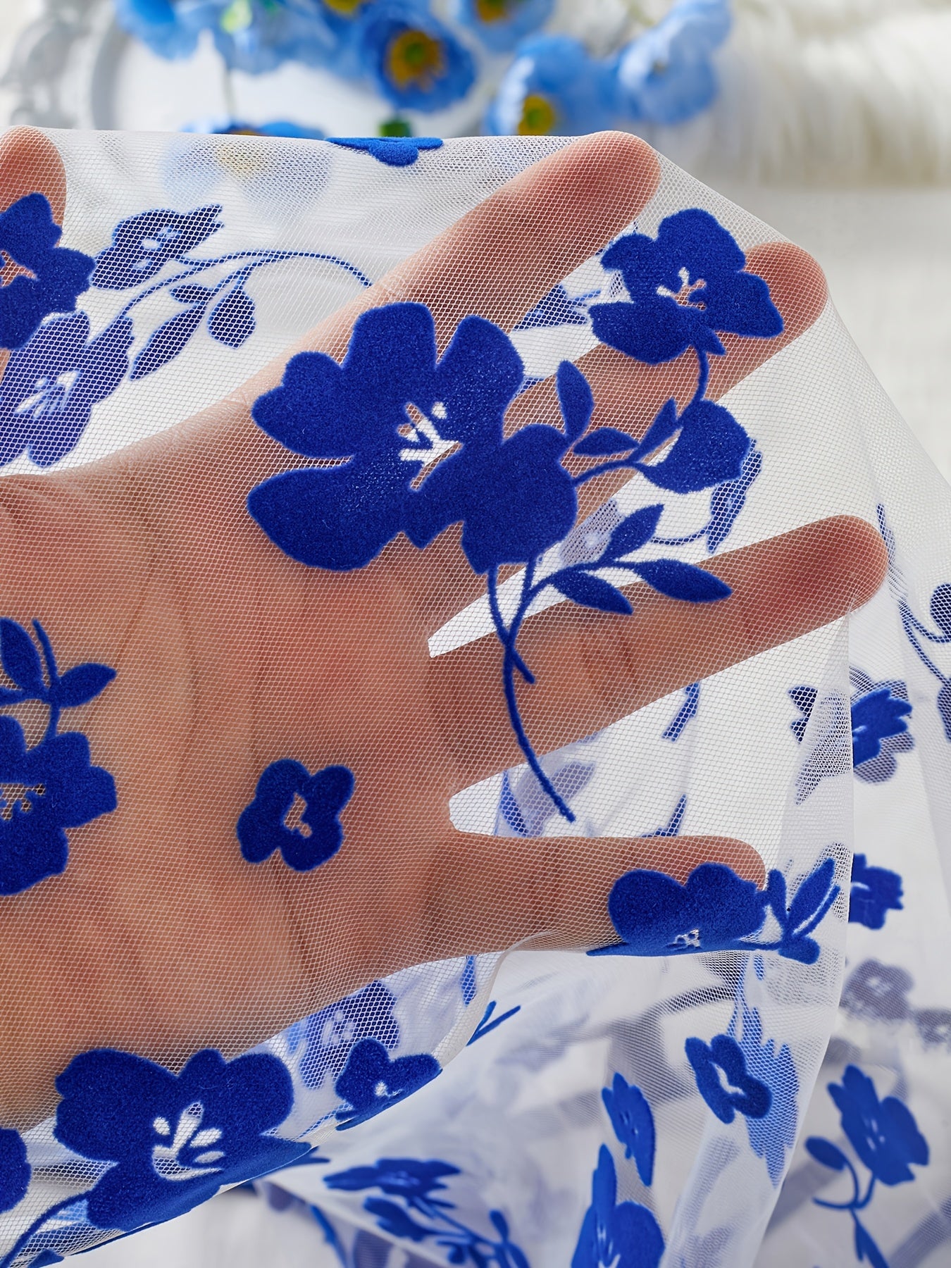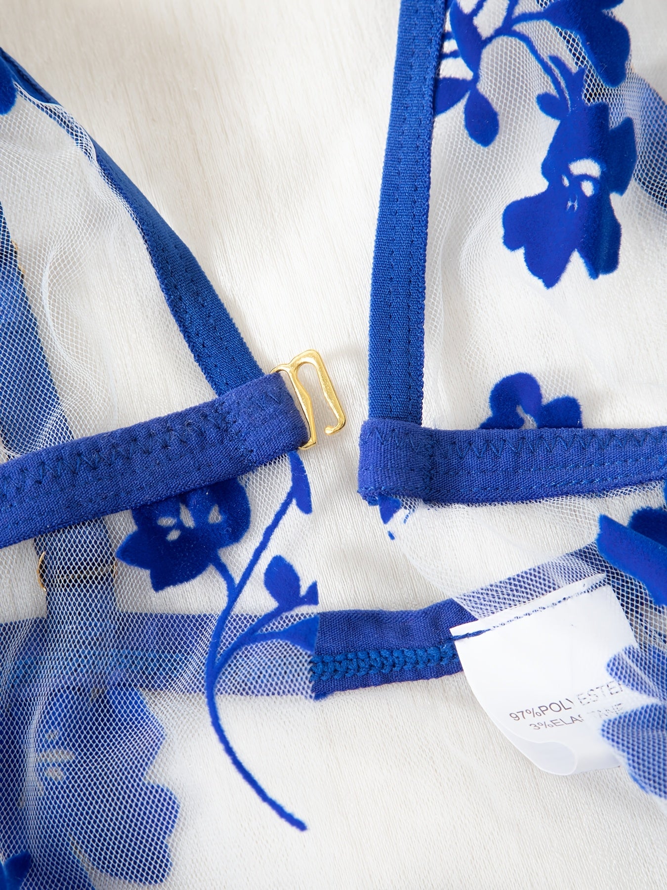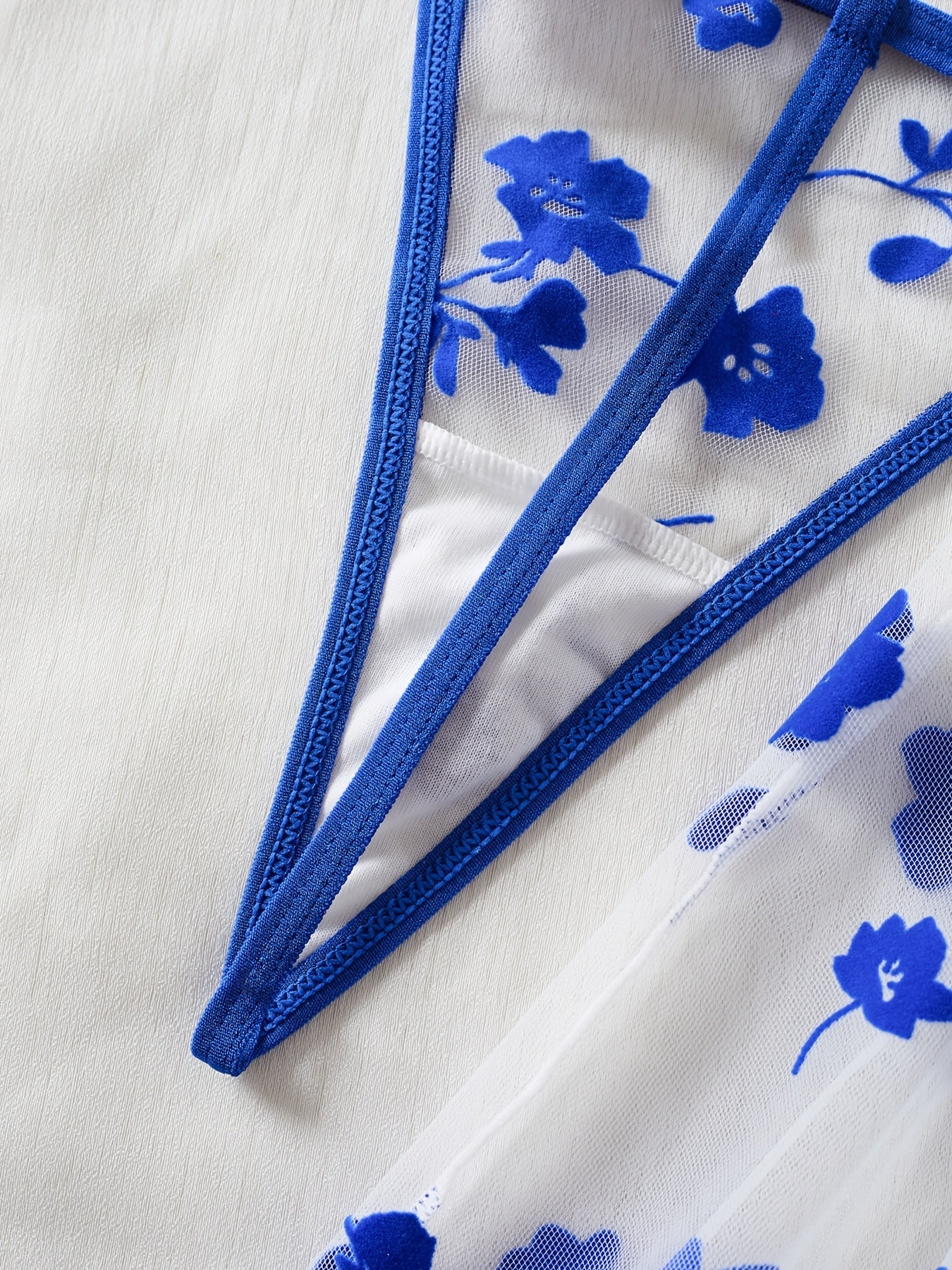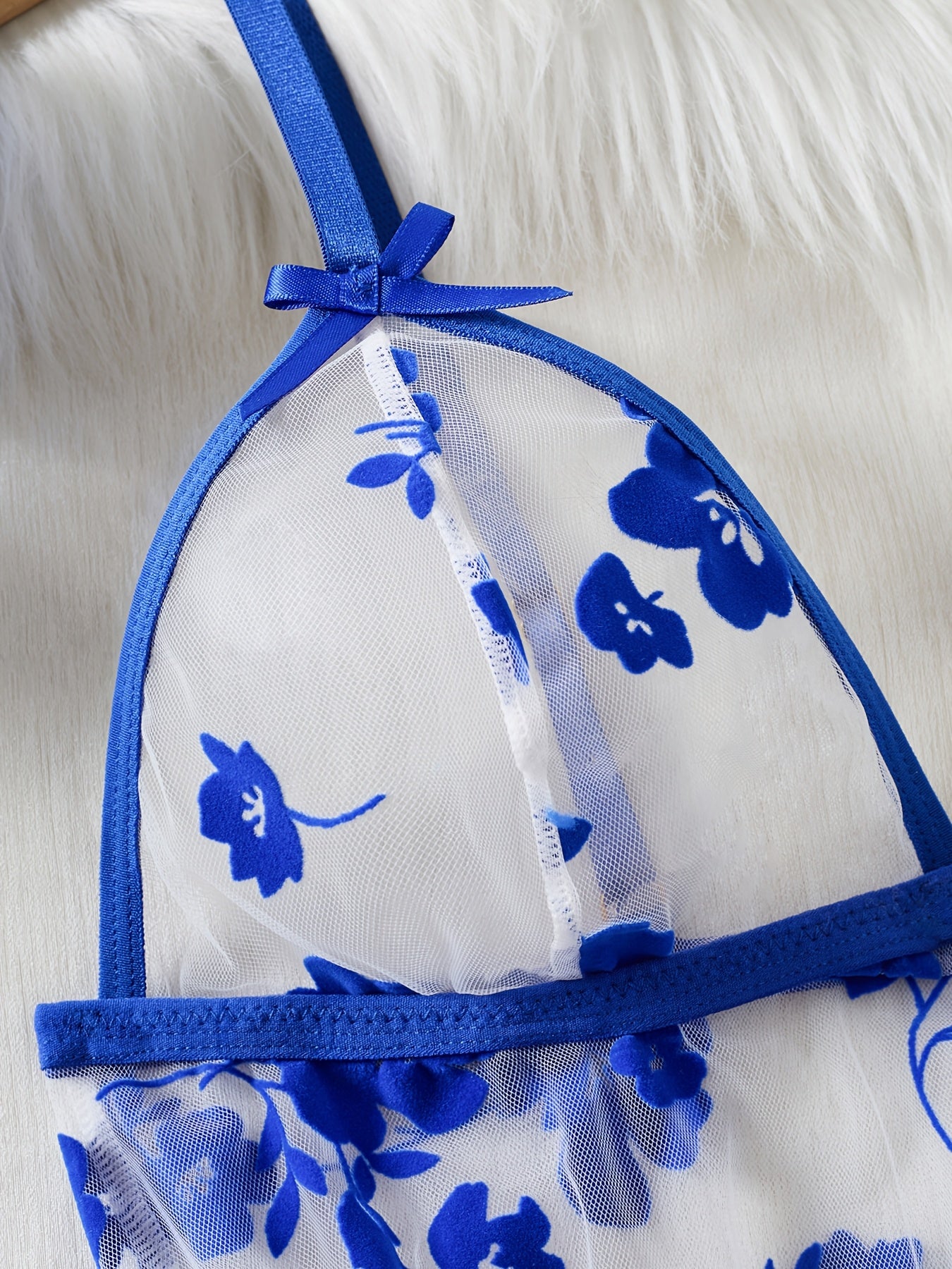 Plus o'lchamli ayollar uchun gul naqshli tarmoq uyqu kiyimlari to'plami kontrast tafsilotlar bilan