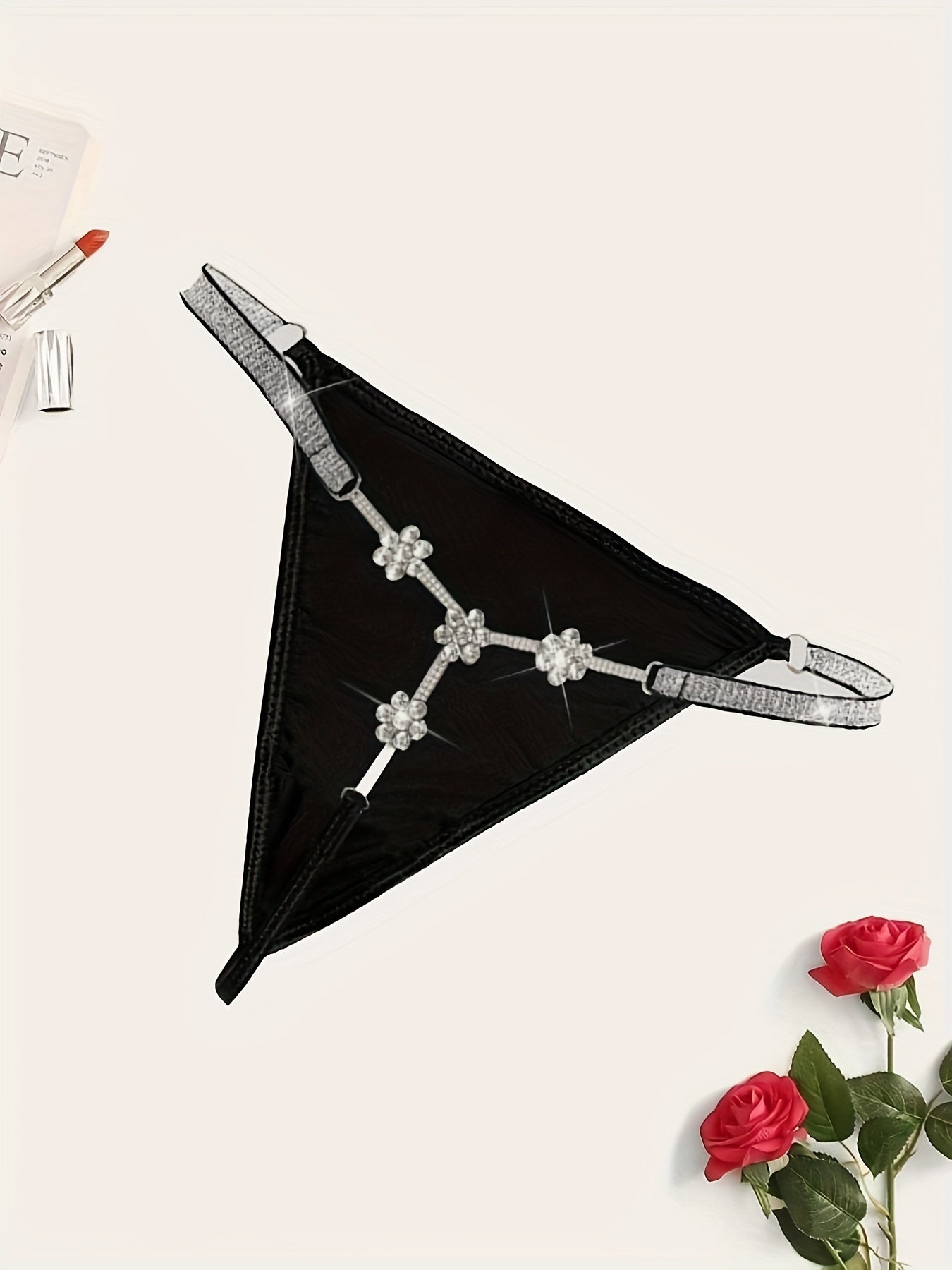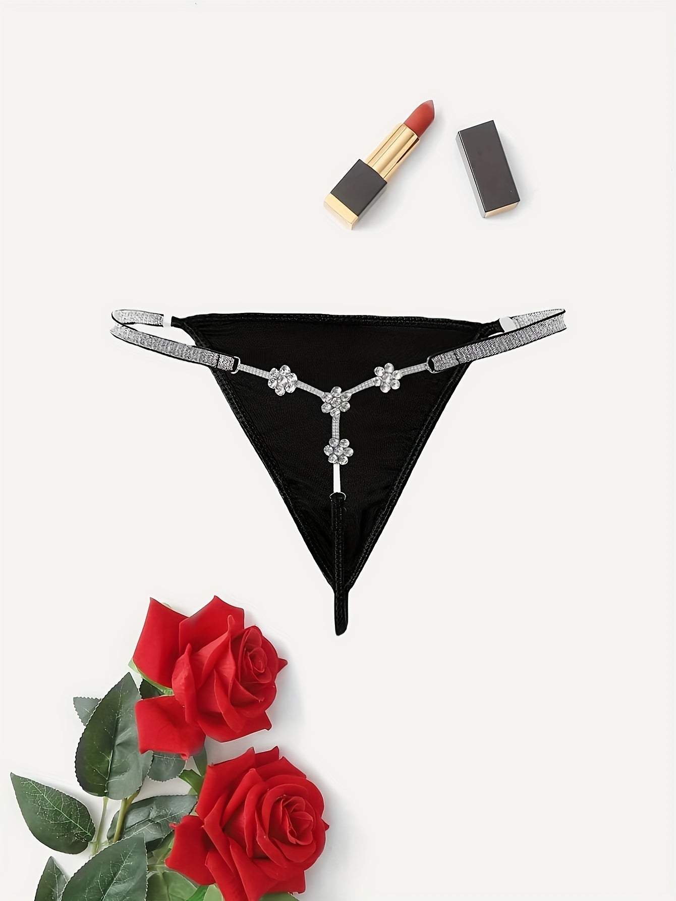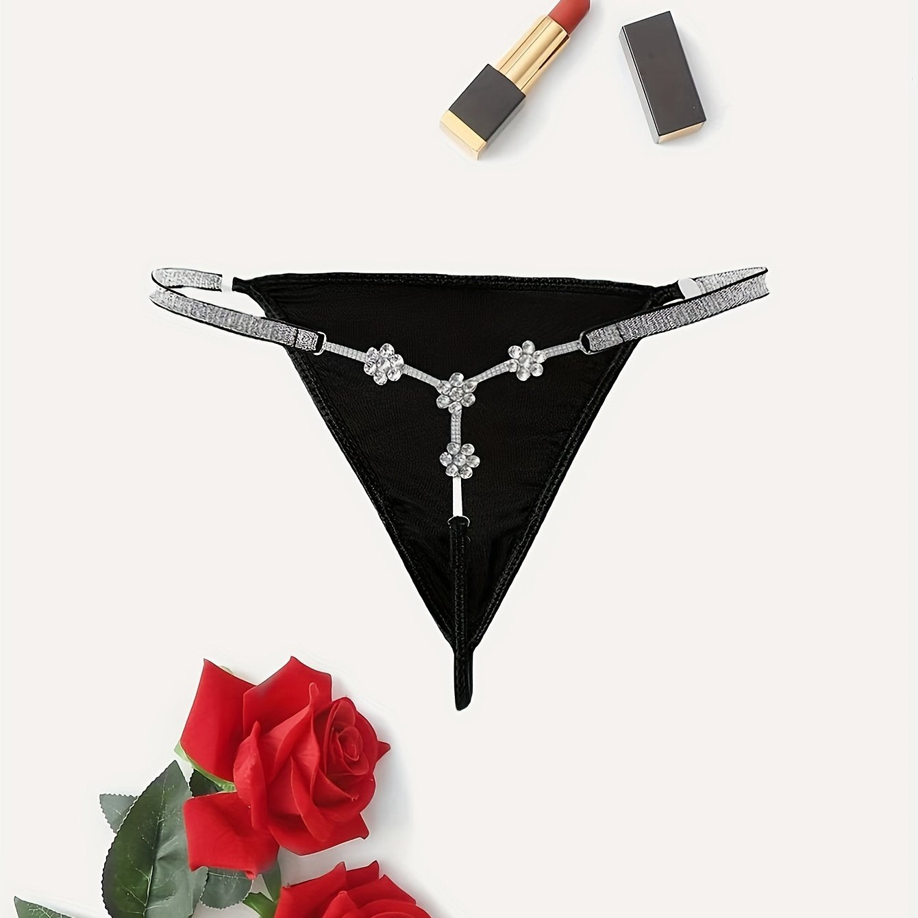 Plus size ayollar uchun gul motifli rhinestone bilan bezatilgan string thong ichki kiyim