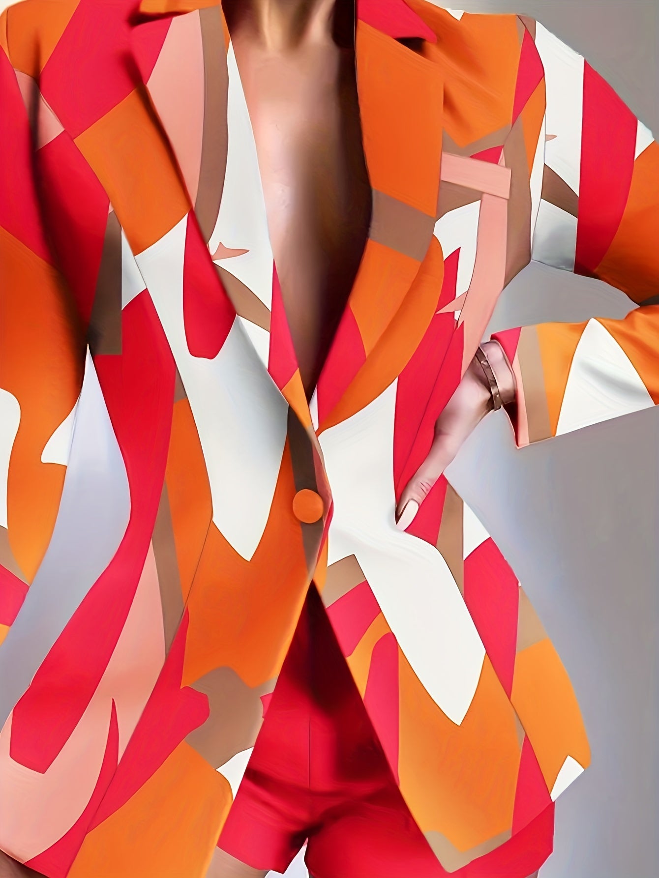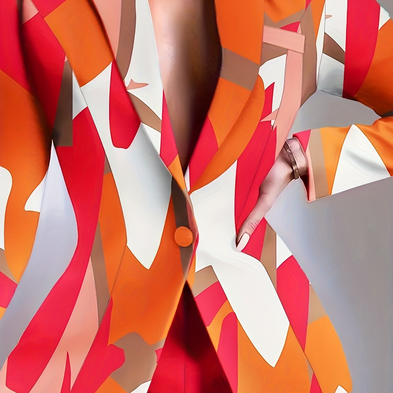 Plus Size Women's Geometric Print Blazer Slim Fit Tuxedo Jacket for Casual and Office