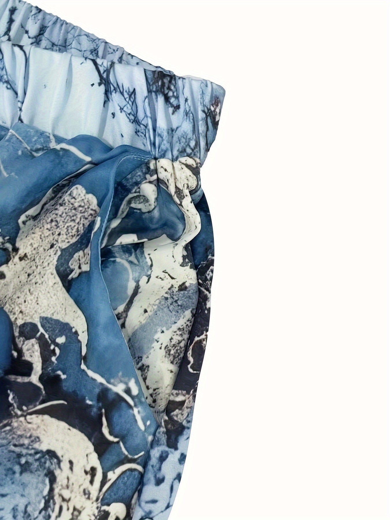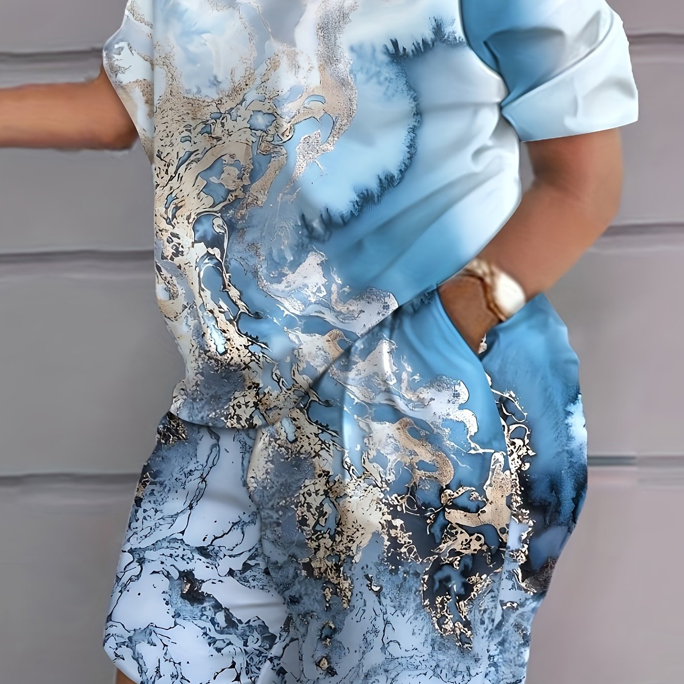 Katta o'lchamdagi ayollar uchun bosma qisqa yengli ikki qismli to'plam.