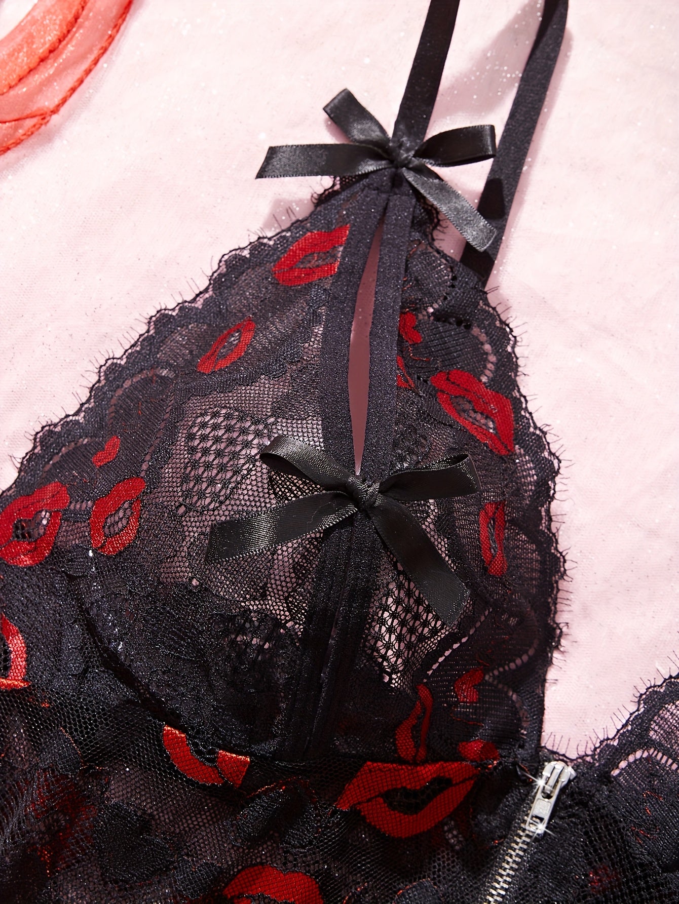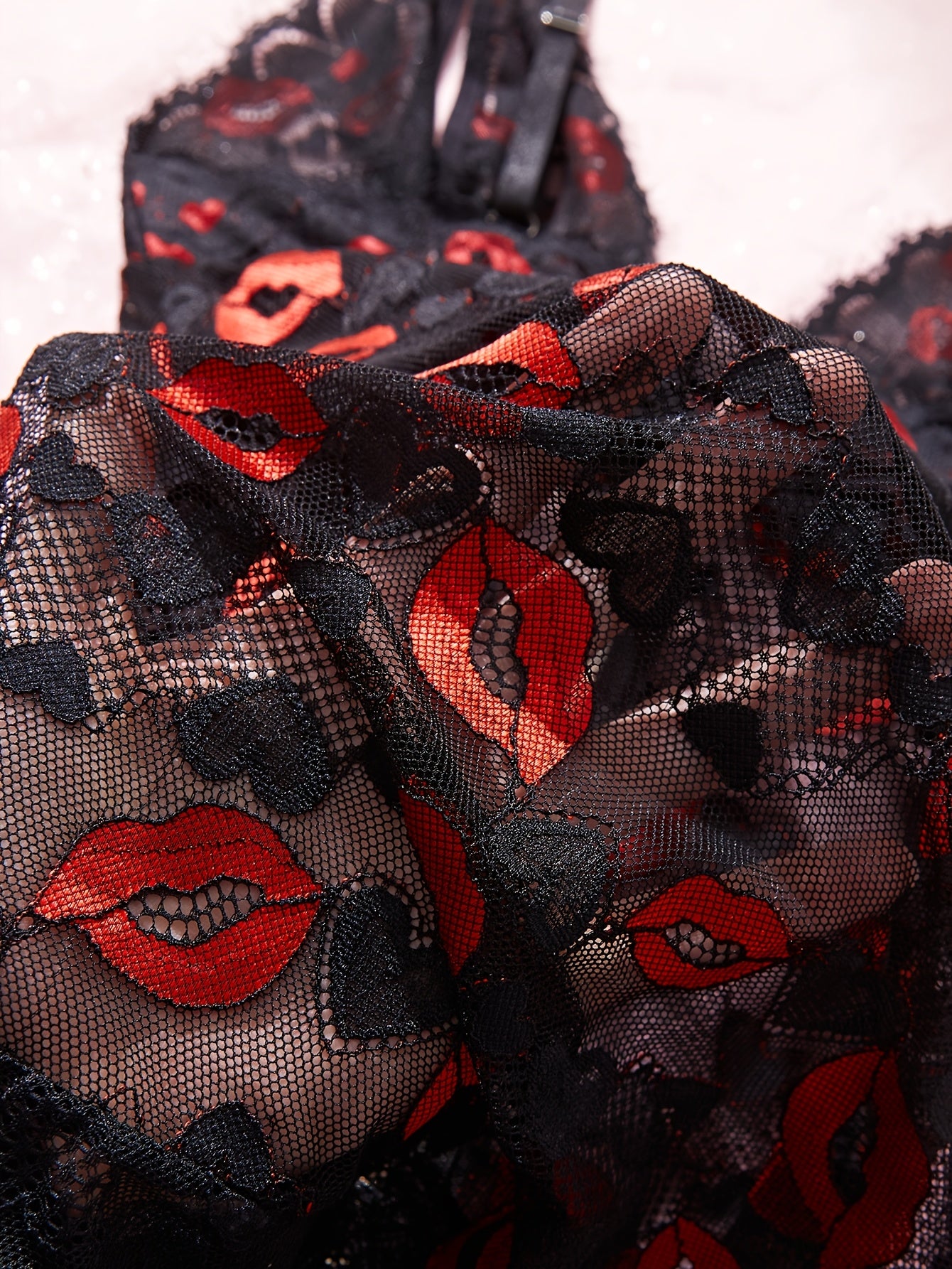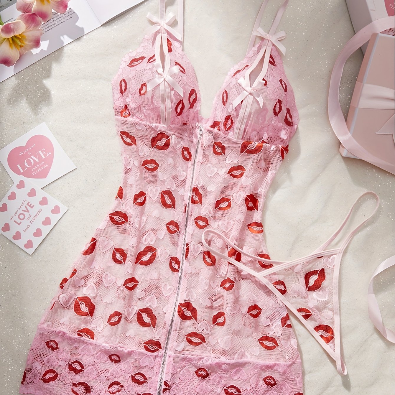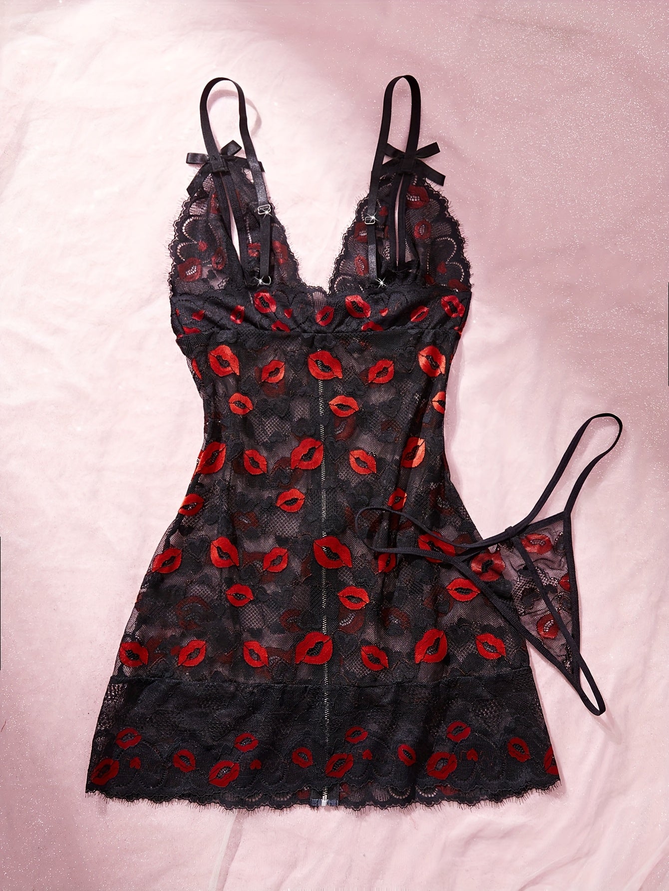Plus o'lcham ayollar uchun shaffof lab bo'yoqli bosma tikilgan kamisol va kiyingan to'plami