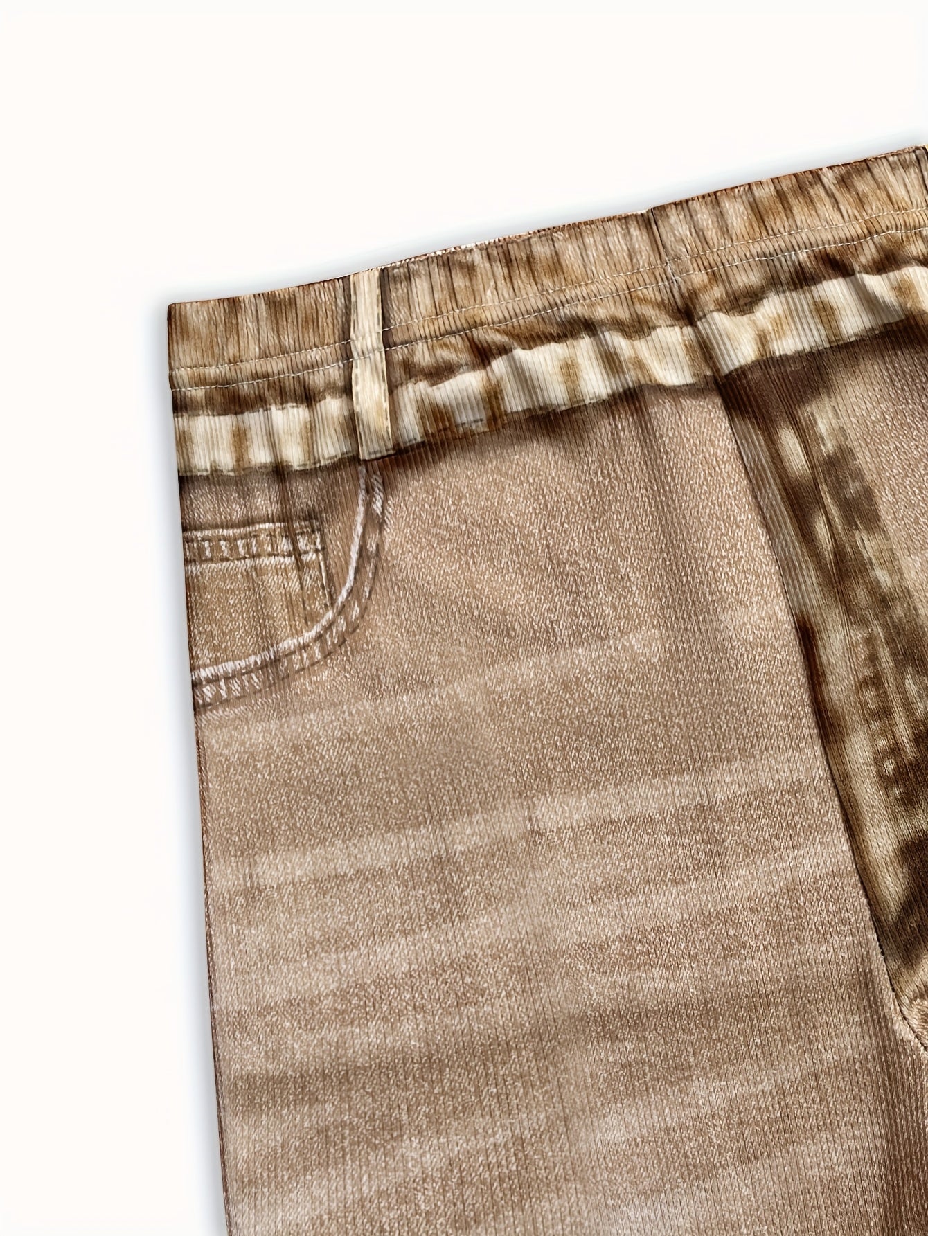 Plus Size Women's Skinny Jeans Denim Print High-Waisted Stretch Leggings Blue Beige