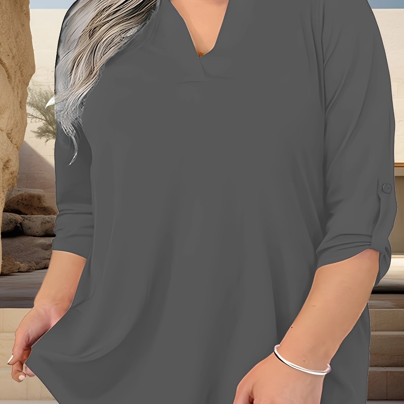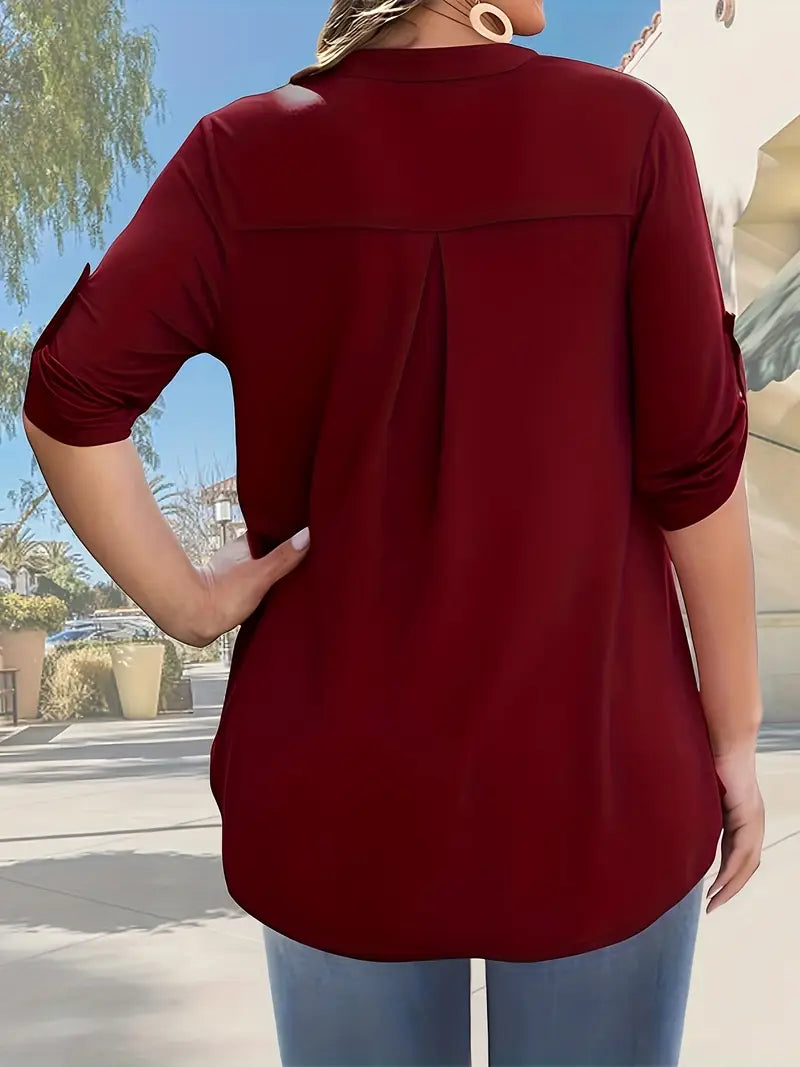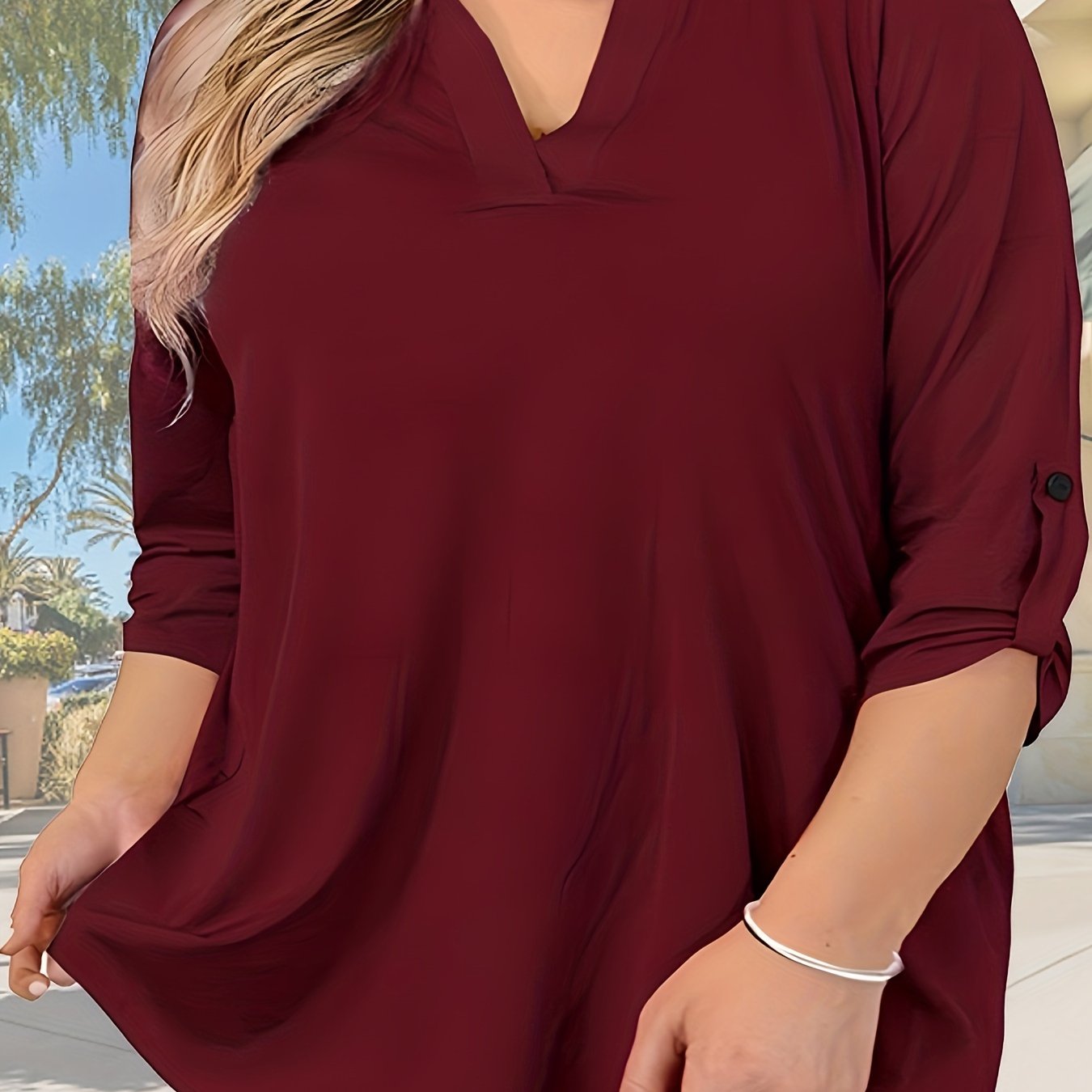 Plus o'lcham ayollar uchun to'liq rangli roll-up ko'ylakli T-shirt, kundalik notched bo'yinli top