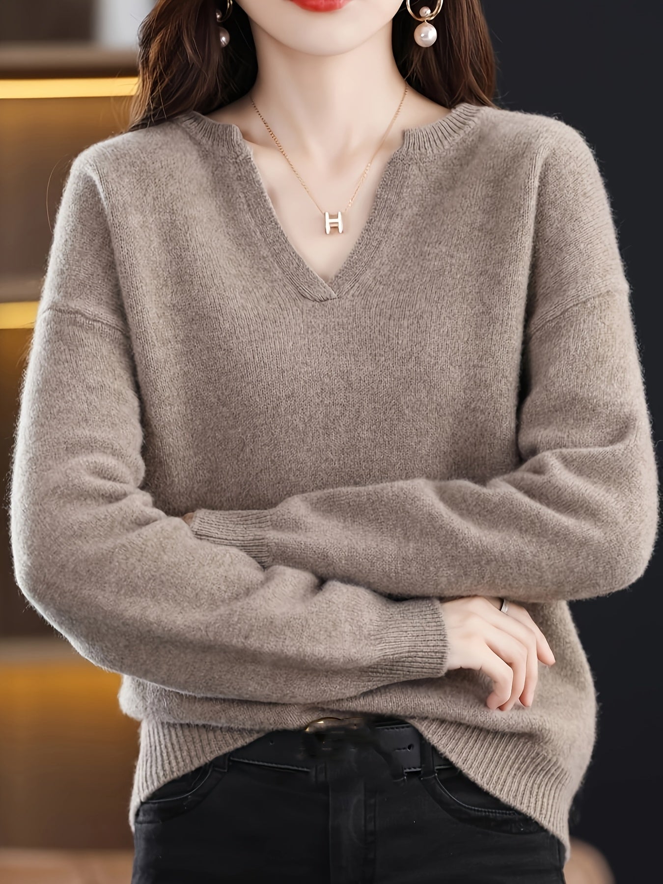 Plus o'lcham ayollar uchun V-shakllı bo'yinli uzun qo'lqopli kofta, qorin nazorati, kundalik pulover