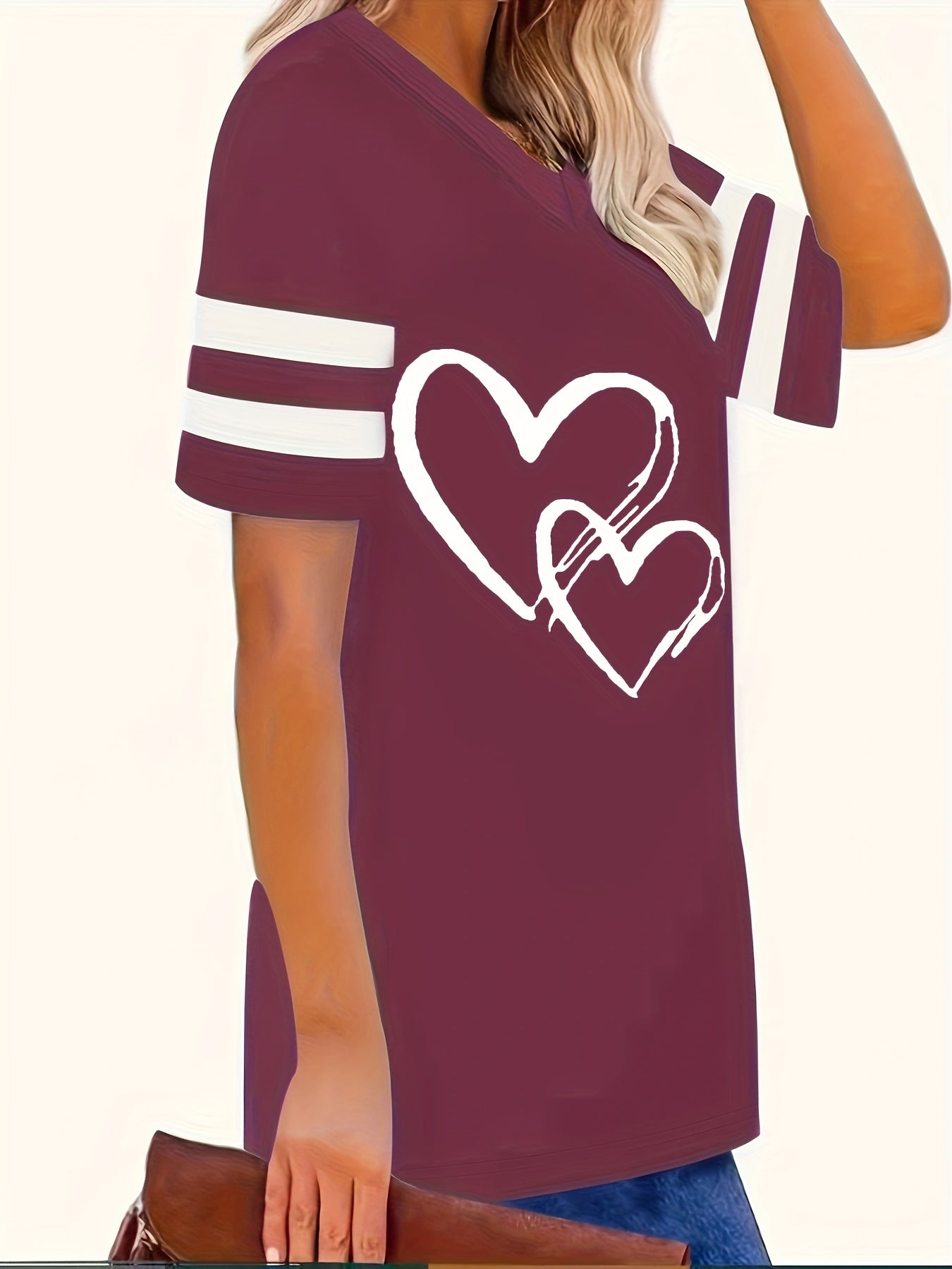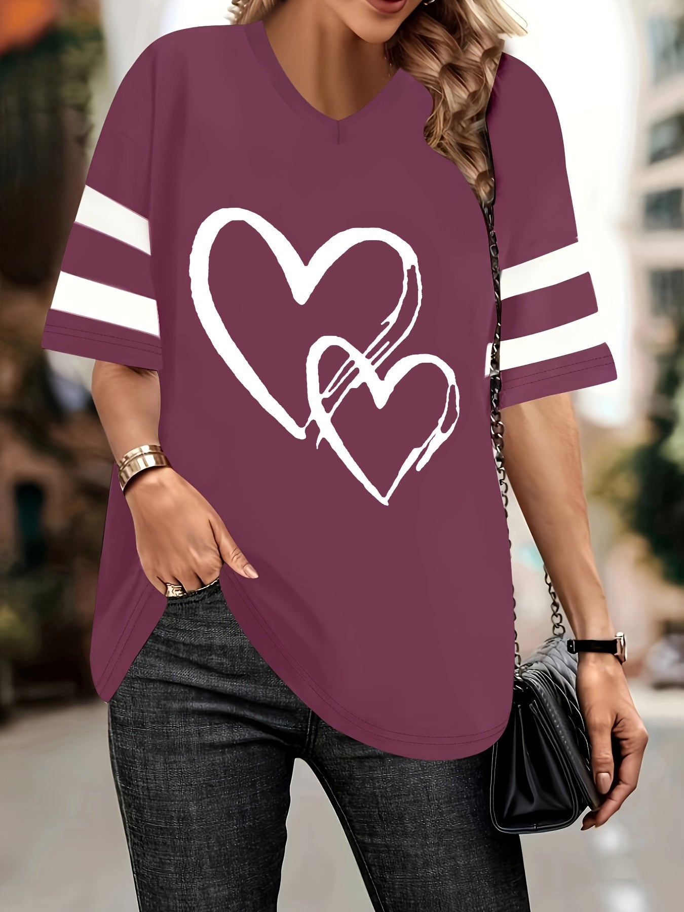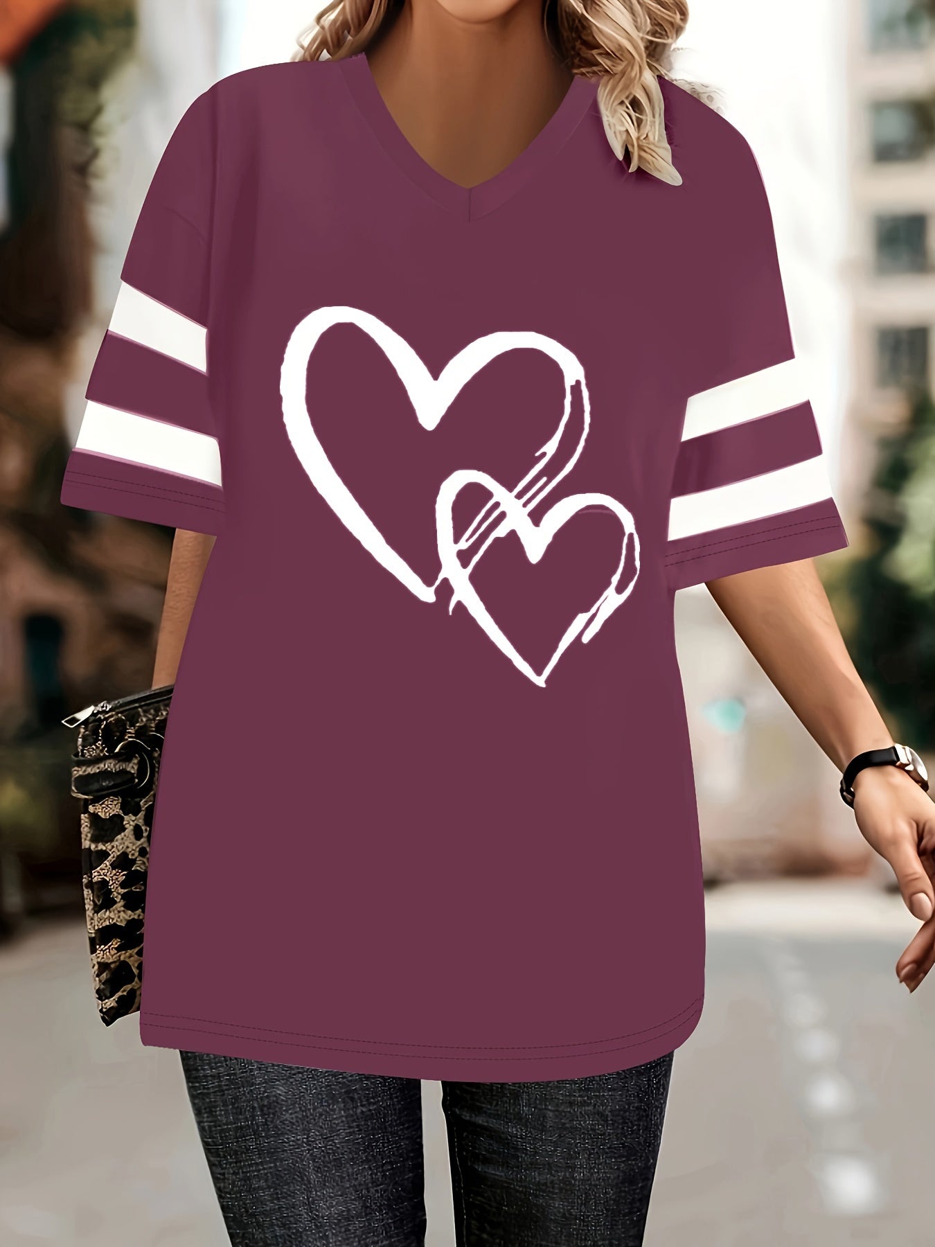 Plus o'lcham ayollar uchun V-yuqa qisqa ko'ylak bilan yurak bosma bahor yoz