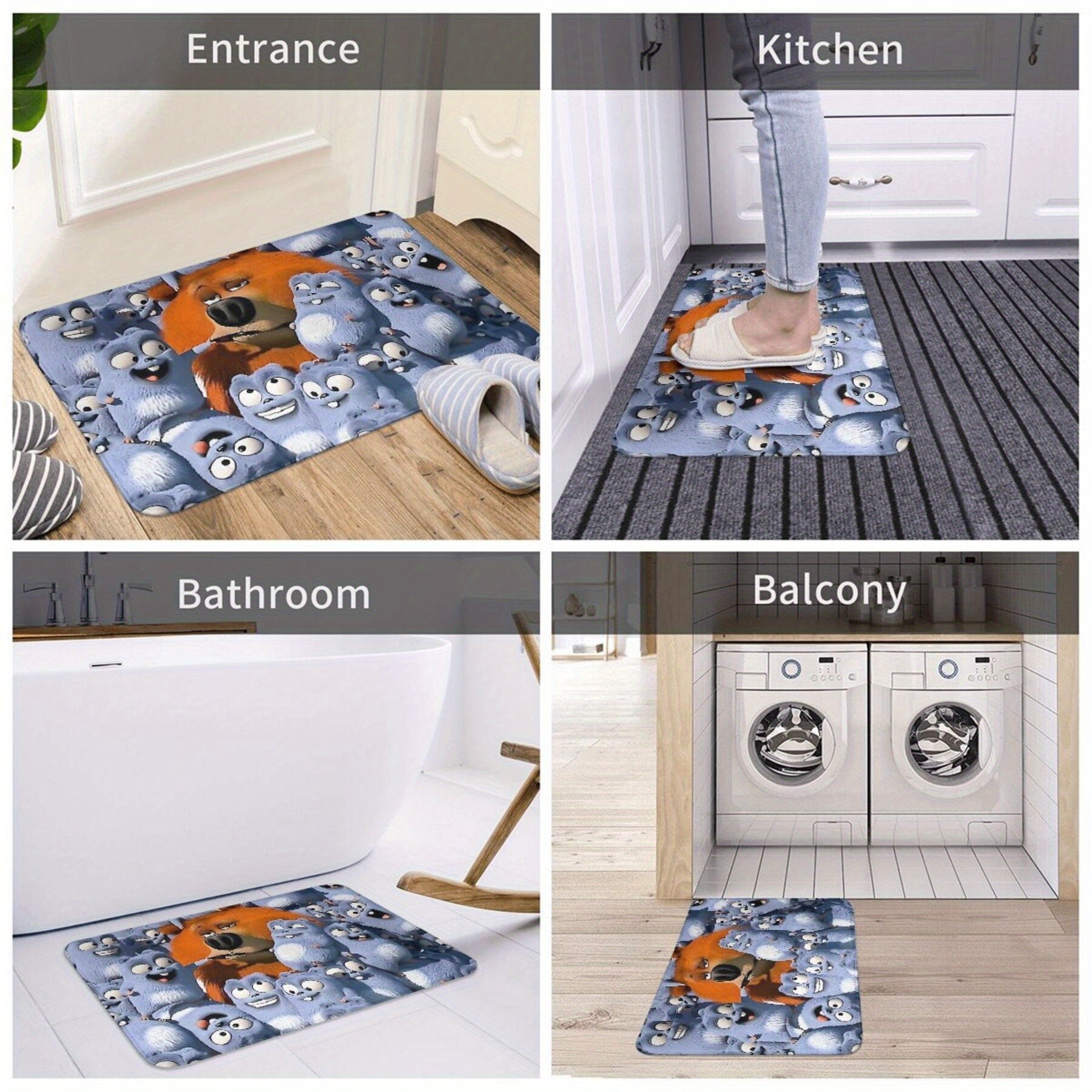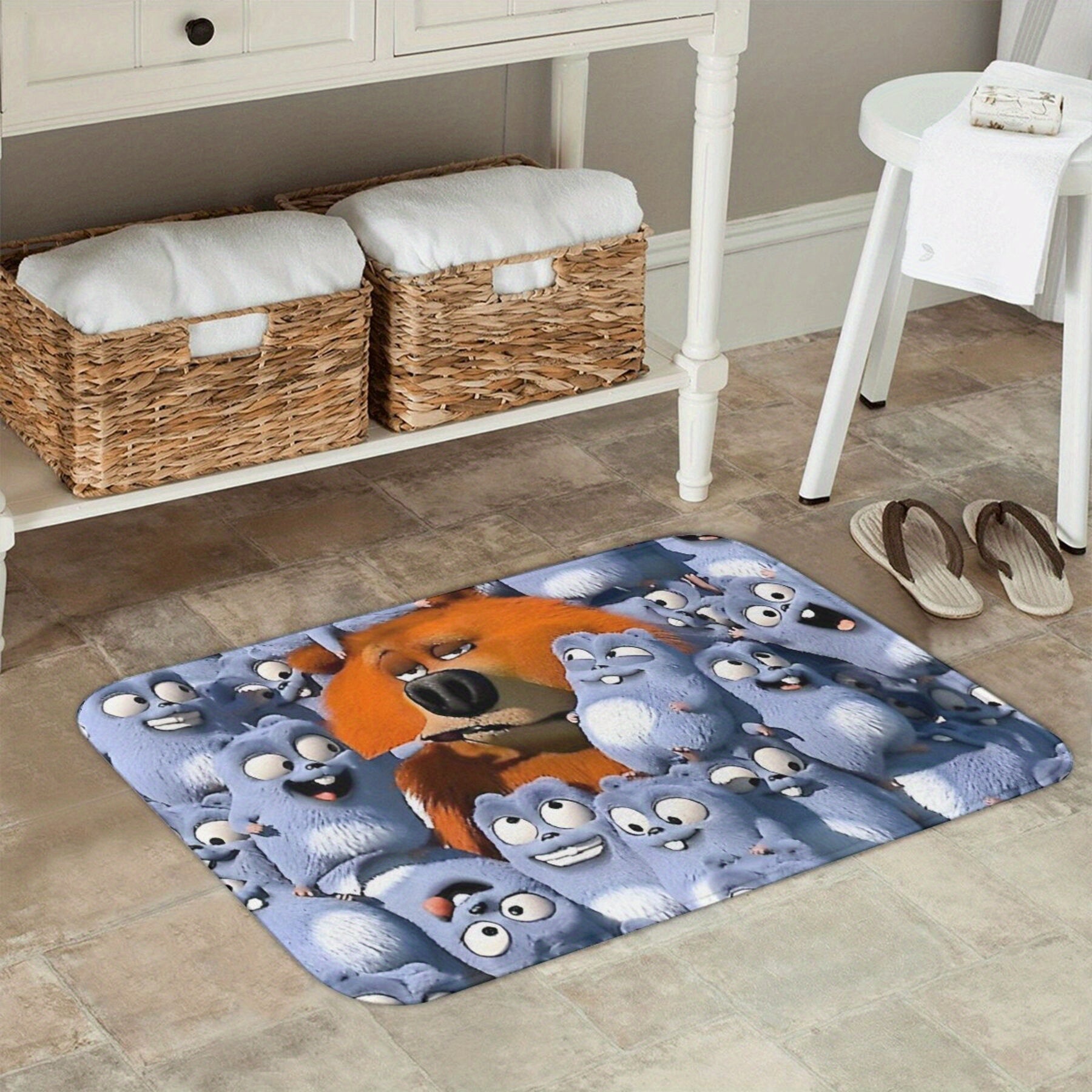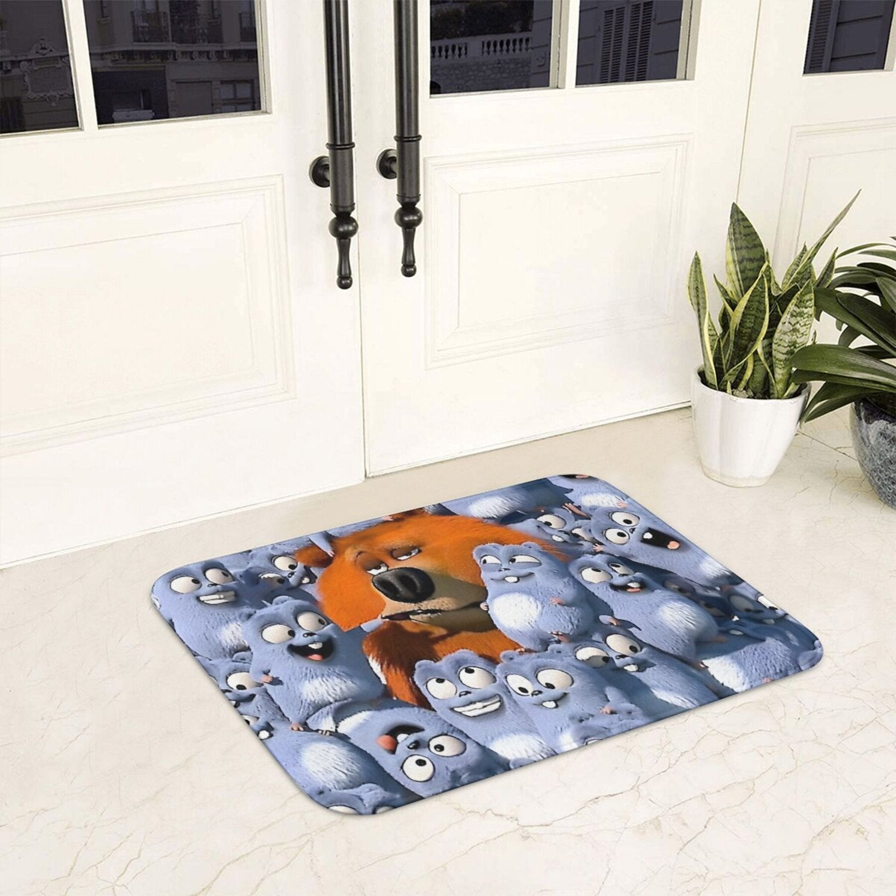 Grizzly va Lemminglar bilan bezatilgan Polyester Kirish Gilami - Yengil, Sirpanmaydigan va Mashinada Yuviladigan To'rtburchak Pol Gilami - Mashinada Tayyorlangan Kirish Gilami