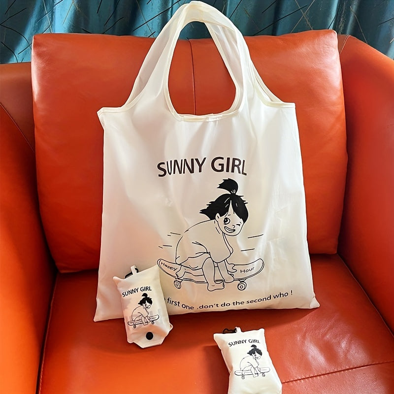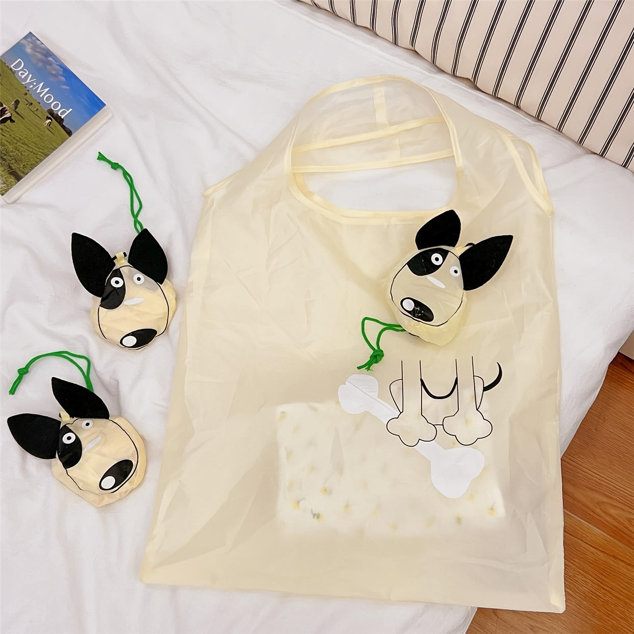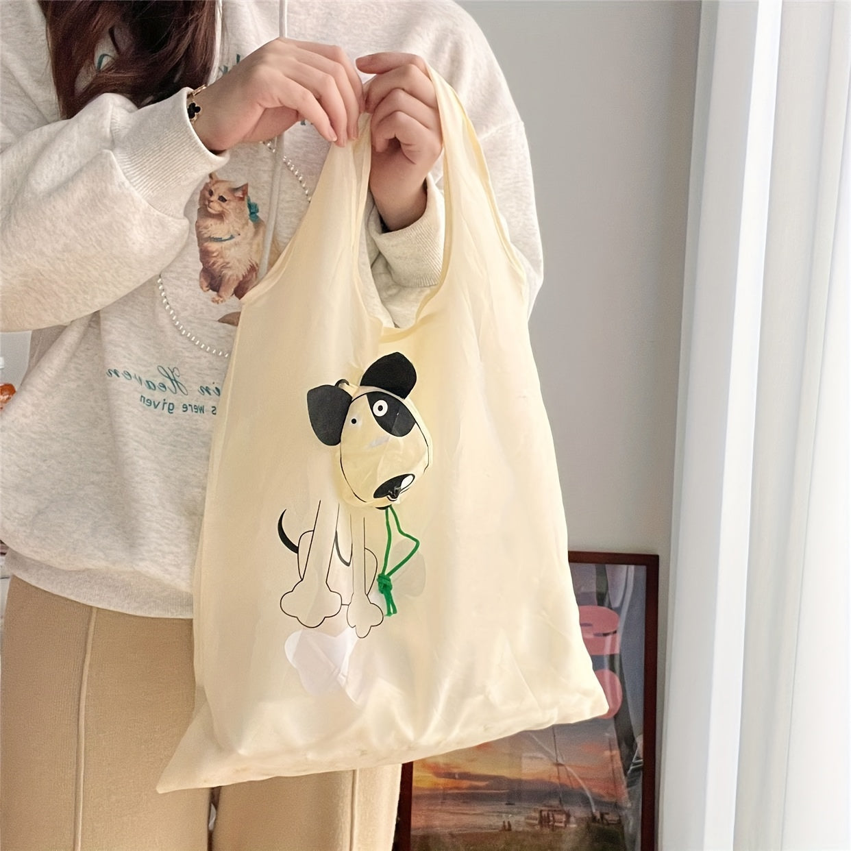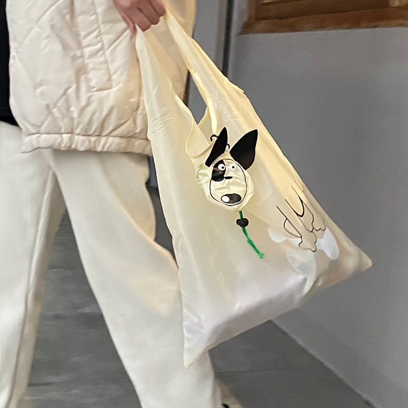 Qayta ishlatiladigan Polyester oziq-ovqat sumkasi, multfilm it tasviri bilan, keng, yig‘iladigan tote