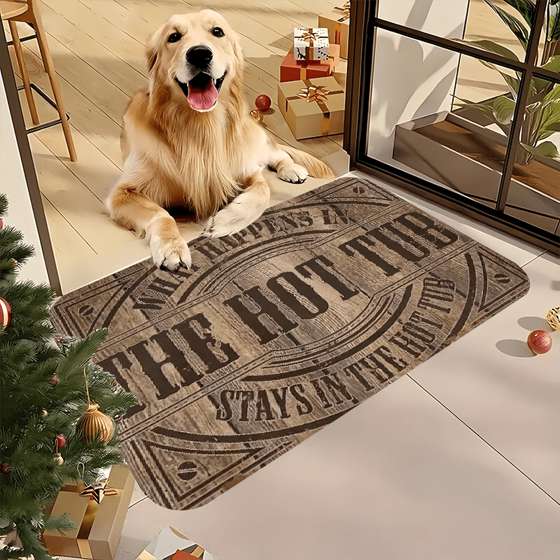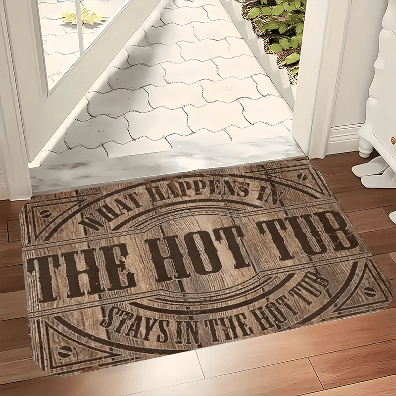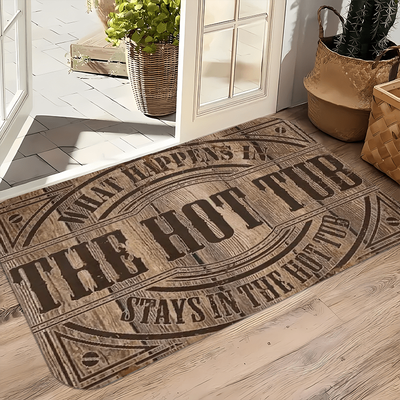 Poliester "Issiq Vanna" Yog'och Qayta Dizayni Xush Kelibsiz Parda - Sirpanmaydigan, Mashinada Yuviladigan, Dog' va Suvga Qarshi Ichki Flanel Mat, Mustahkam va Rang O'zgarmaydigan