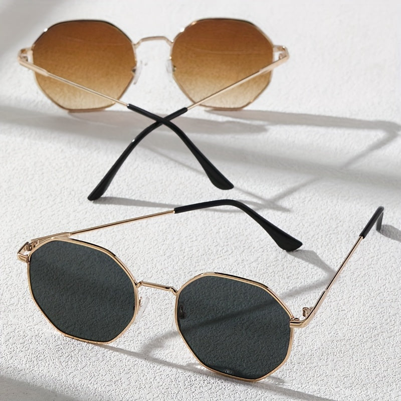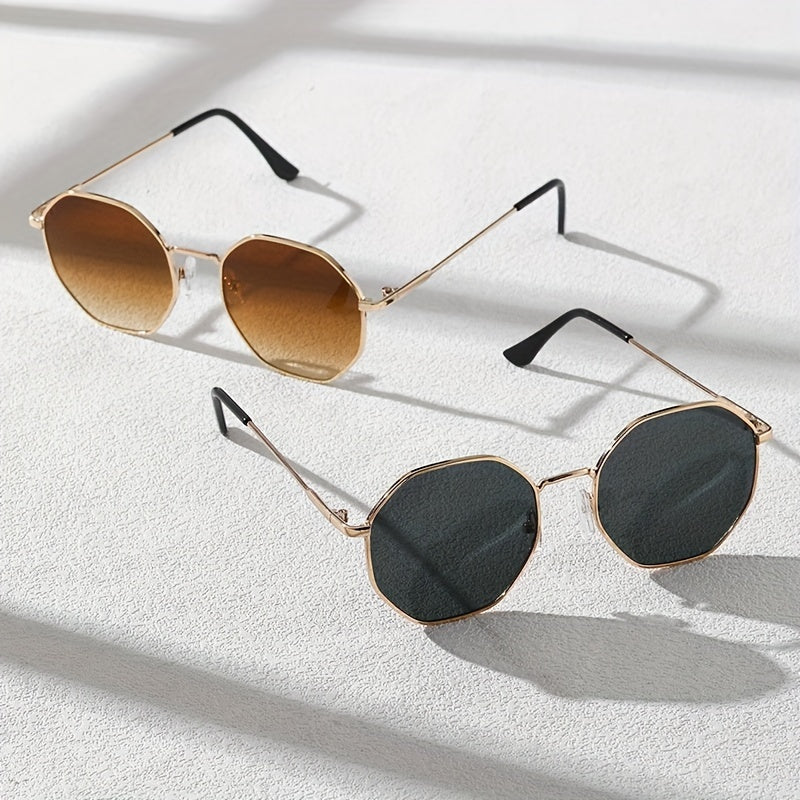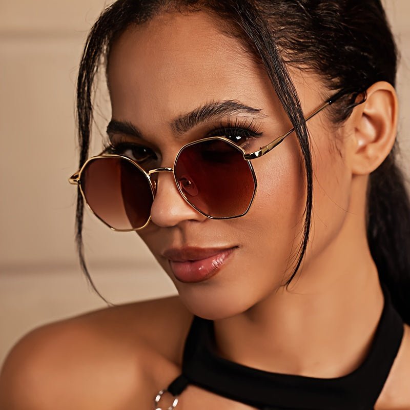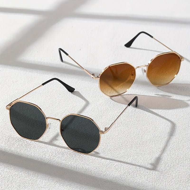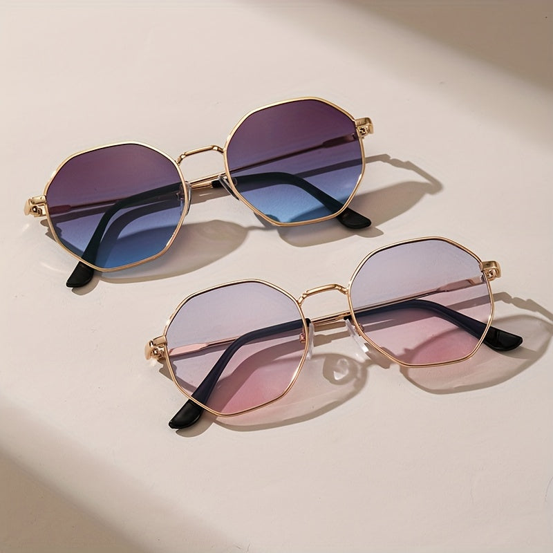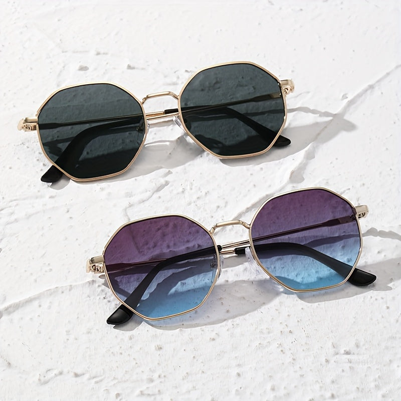 Ayollar va erkaklar uchun polygonal metall shisha to'plami, kundalik gradient dizayni, plyaj partiyasi aksessuarlari