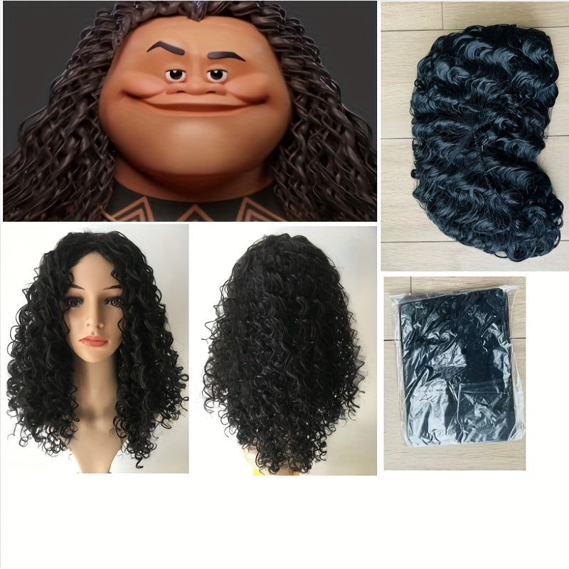 Polineziya afsonasi Maui qahramoni ilhomlangan qora rangdagi burma parik, uzun jingalak issiqqa chidamli tolalar, kostyum o'ynash va anime cosplay uchun mukammal. To'r parik qopqog'i to'plami bilan birga keladi, uzunligi 45.72 sm.