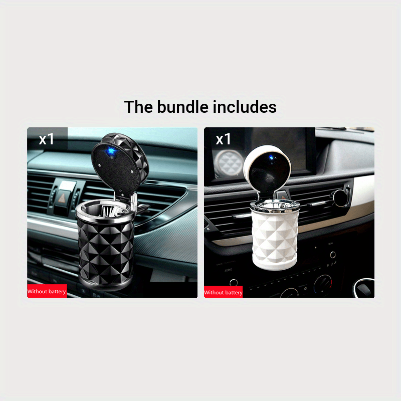 Portativ alloy avtomobil tutun qutisi LED chirog'i bilan, qora va oq, yopiq, kompakt ichki aksessuar