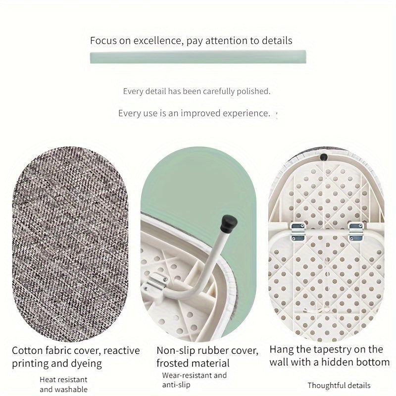 Portativ va mustahkam dazmol taxtasi, yig'iladigan dizayn - yengil va foydalanish uchun oson, yotoqxona va kvartiralar kabi kichik yashash joylari uchun mukammal, burishmaydigan kiyimlar uchun elektr energiyasi talab qilinmaydi.