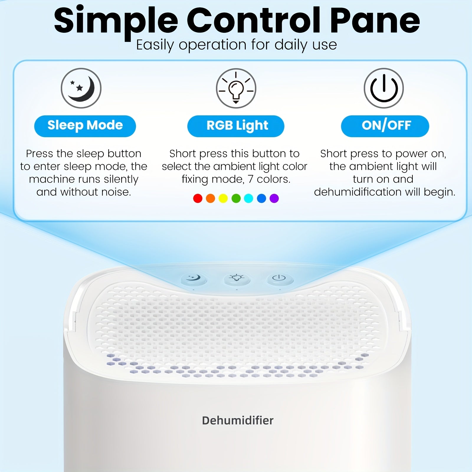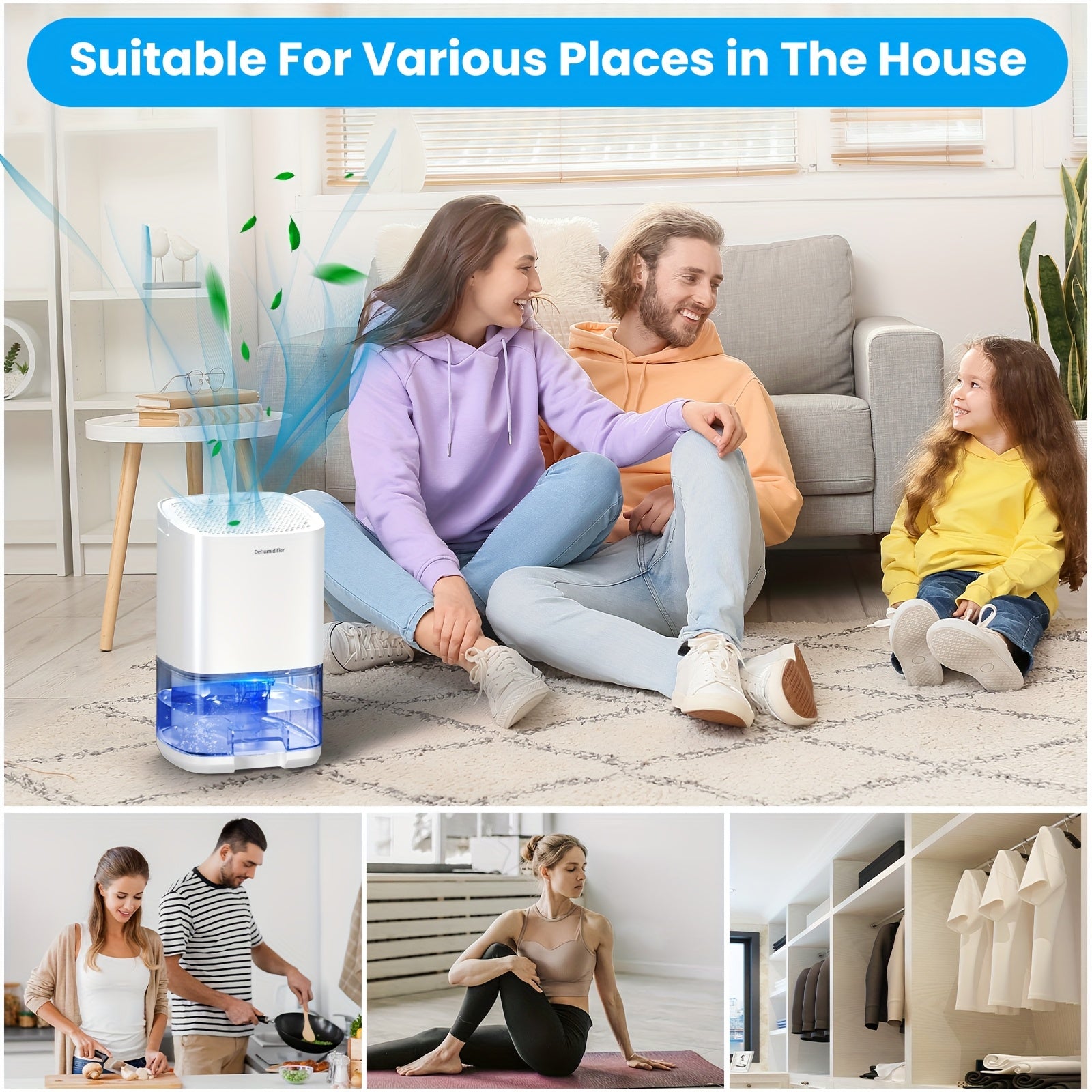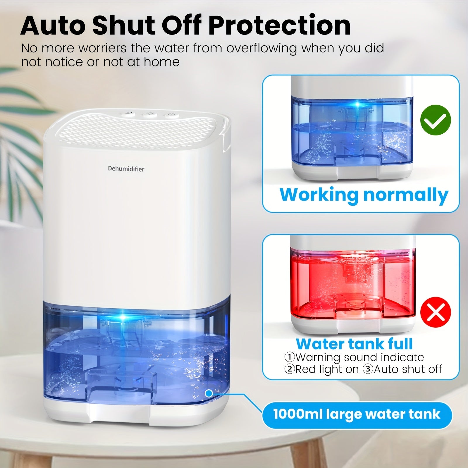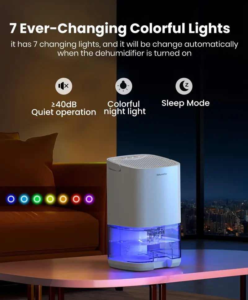 Uy uchun yotoqxona uchun 1L portativ namlikni olib tashlovchi qurilma, ko‘k LED chiroq bilan, shovqinsiz ishlash