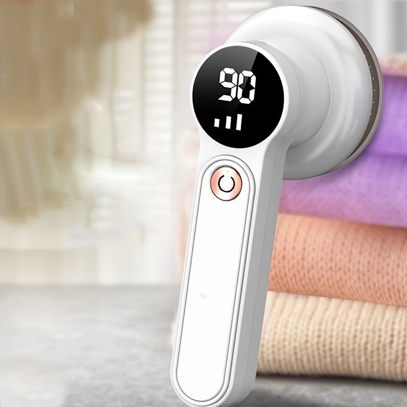Raqamli ko'rsatkich, ikki himoya va litiy batareyasi bilan jihozlangan portativ mato qirqish mashinasi, kiyim va mebellardan to'kintilar va pillalarni olib tashlash uchun.