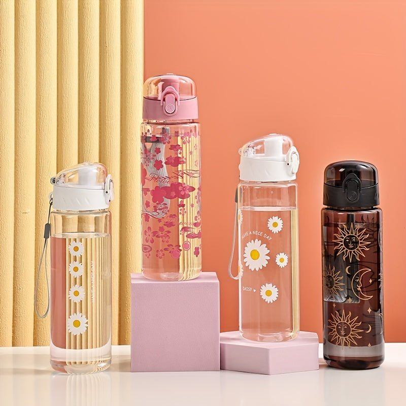 Quyosh va gullar dizayni bilan portativ katta sig'imli plastik suv idishlari, camping uchun suyuqlik o'tkazmaydigan BPA-free tumblerlar, olib yurish uchun qulay, sovg'a sifatida berishga mos keladigan stakanchalar.
