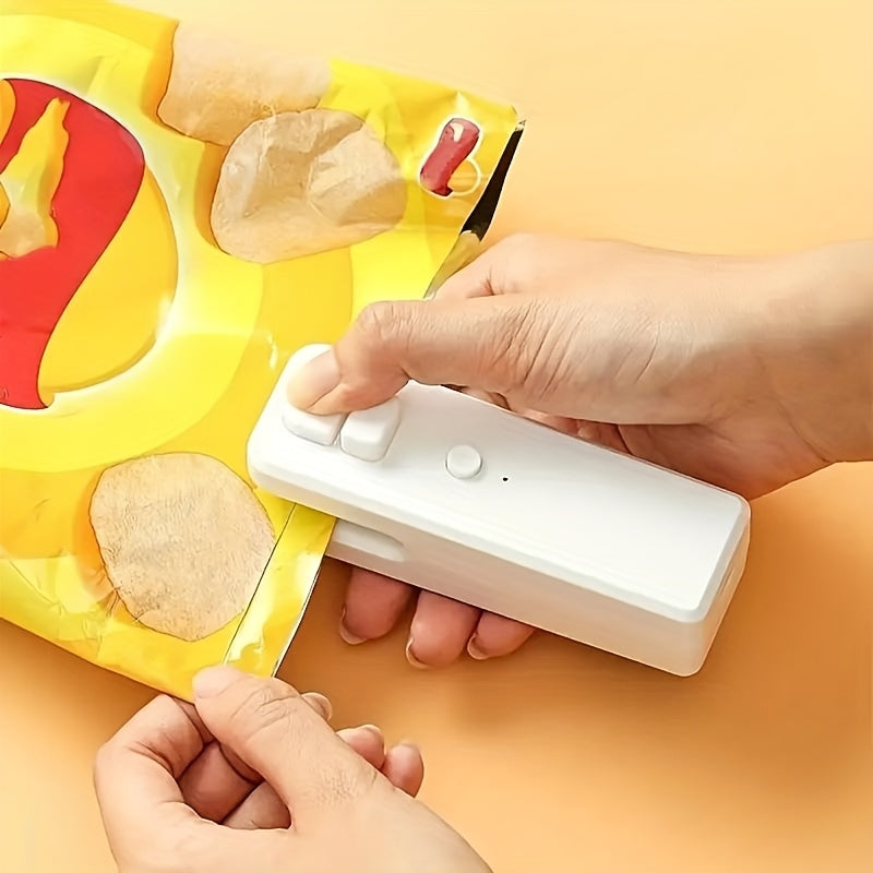Mini oziq-ovqat sumkasi yopish va kesish uchun USB qoʻl bilan ishlash, oq va yashil barg naqshli, oshxona uchun