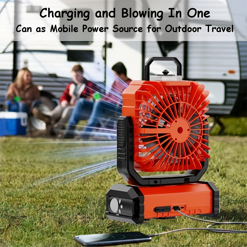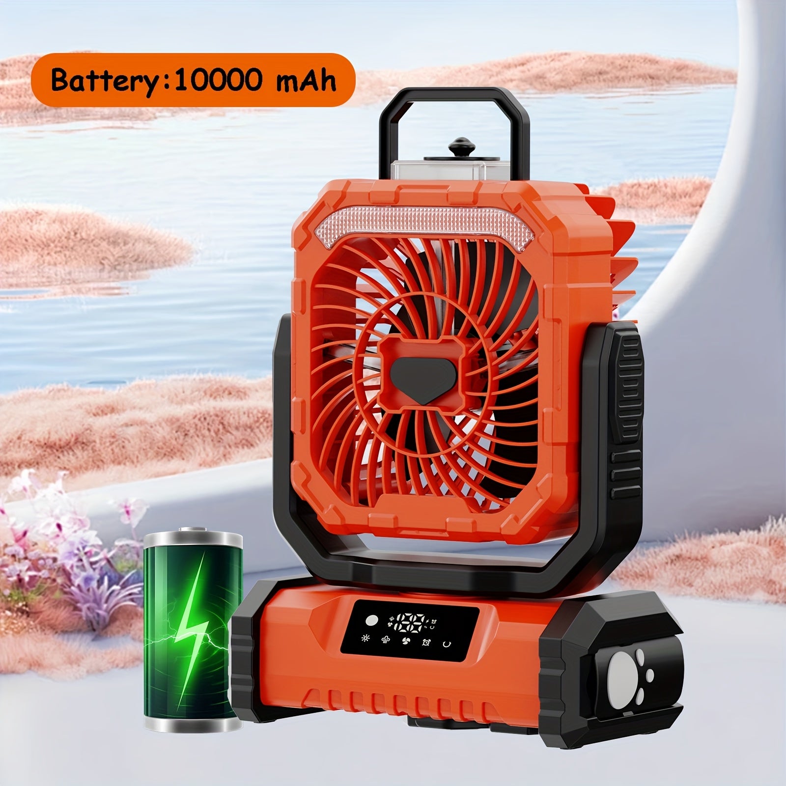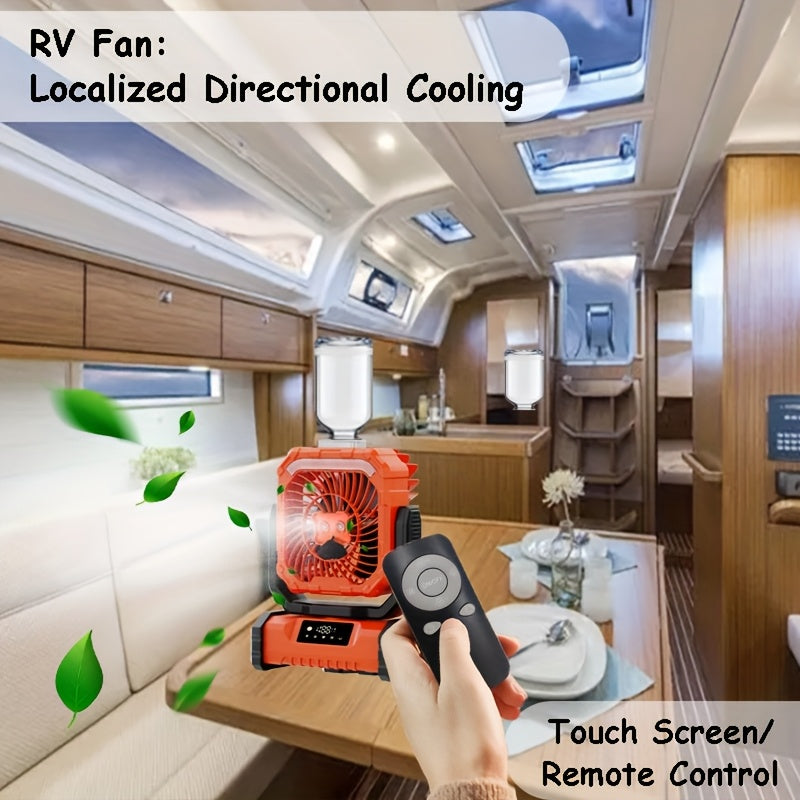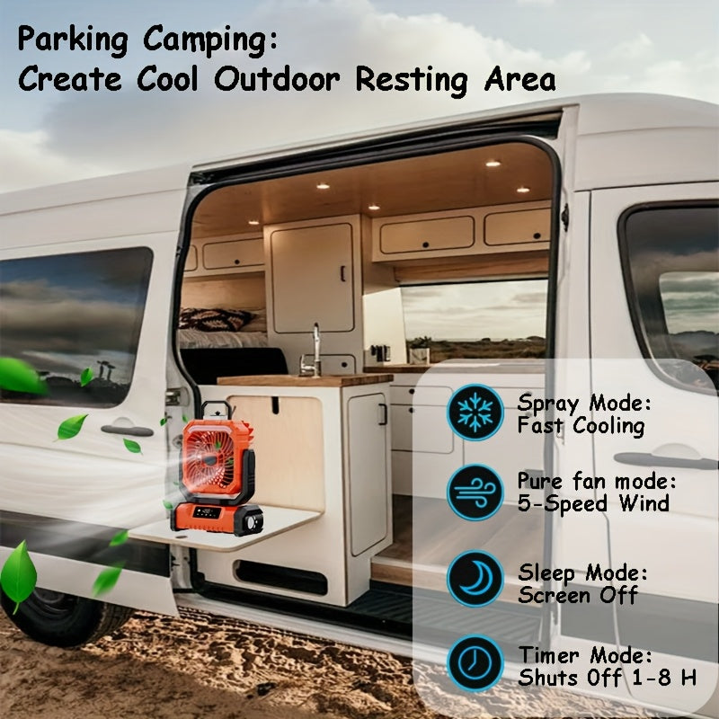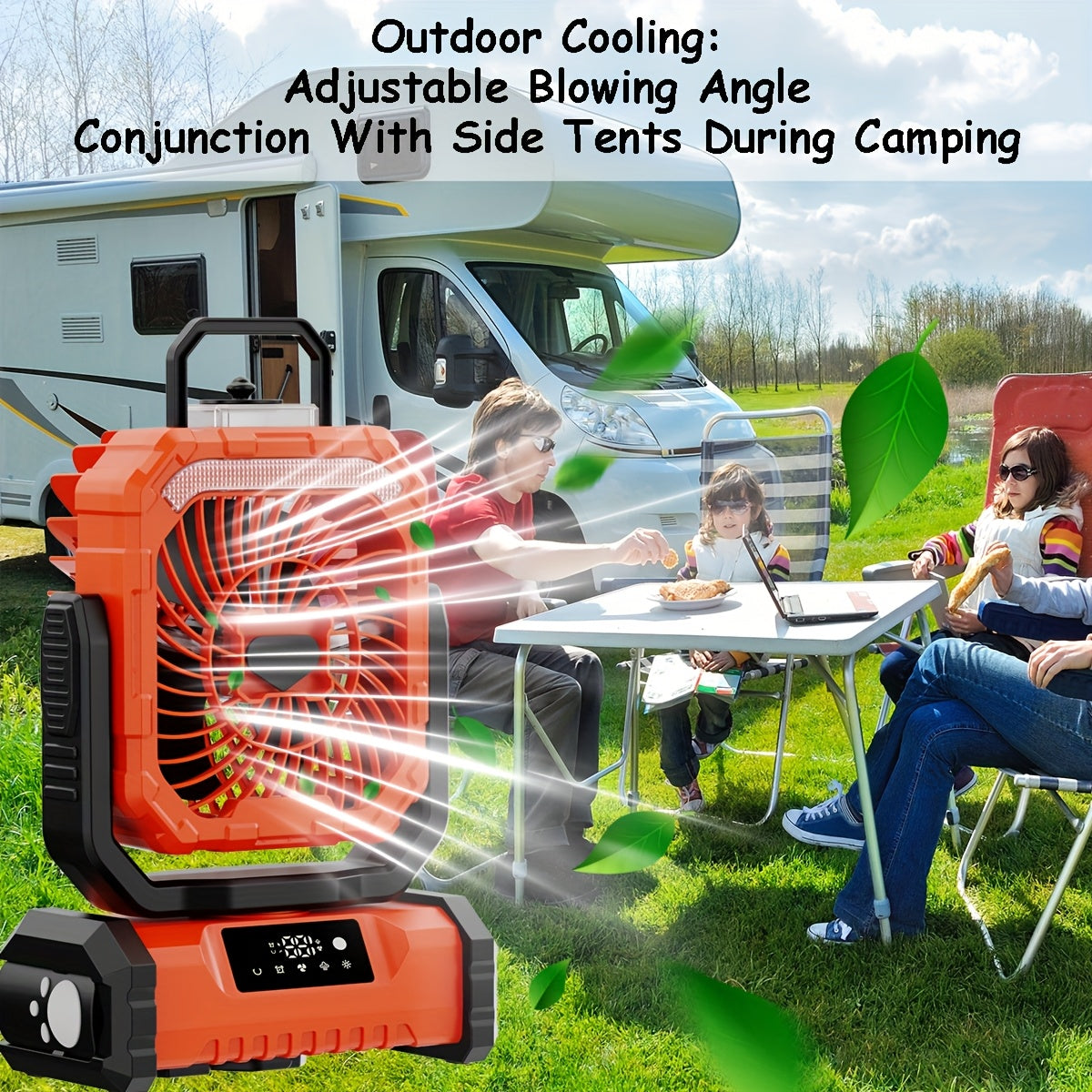 LED displey va masofadan boshqaruv bilan portativ RV ventilyatori, besh tezlikda sovutish, katta suv shishasi, uchta LED yorug'lik rejimi, favqulodda quvvat banki.