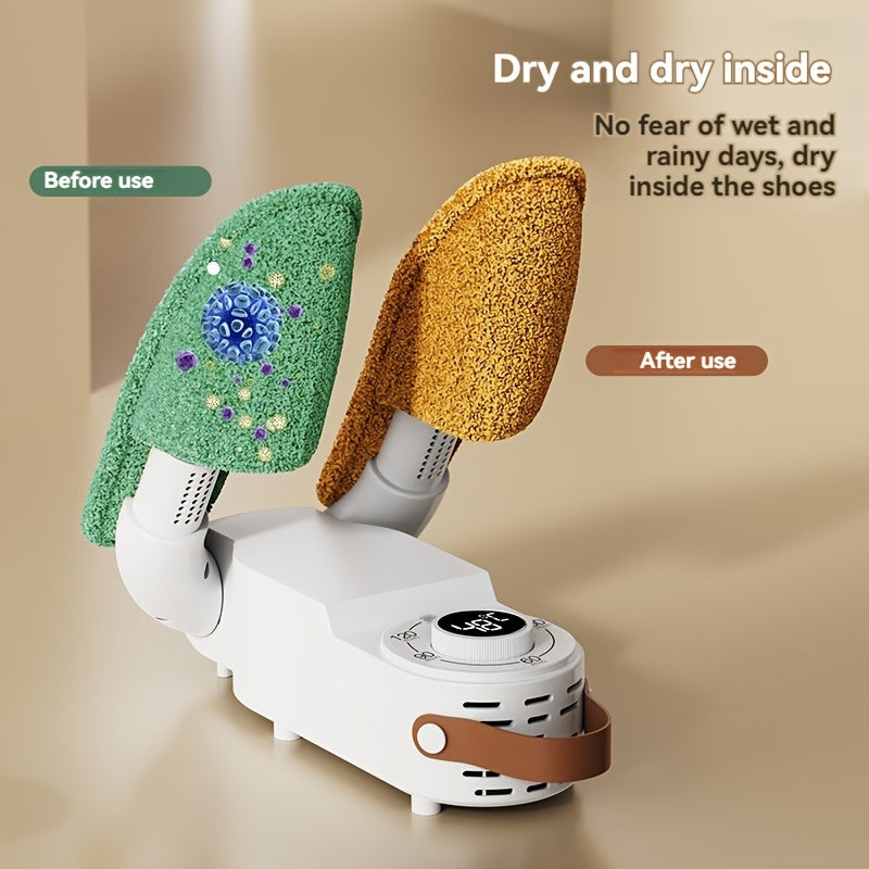 Portativ poyabzal qurituvchi va isituvchi, egiluvchan dizayn, hidni yo'q qiladi, Evropa standartidagi rozetka, batareyalar talab qilinmaydi.