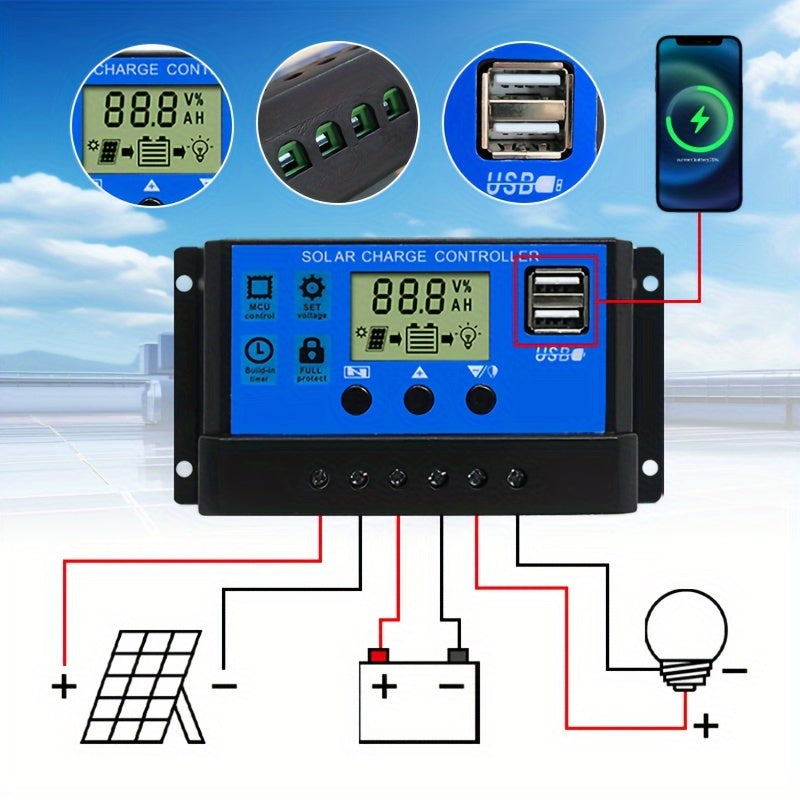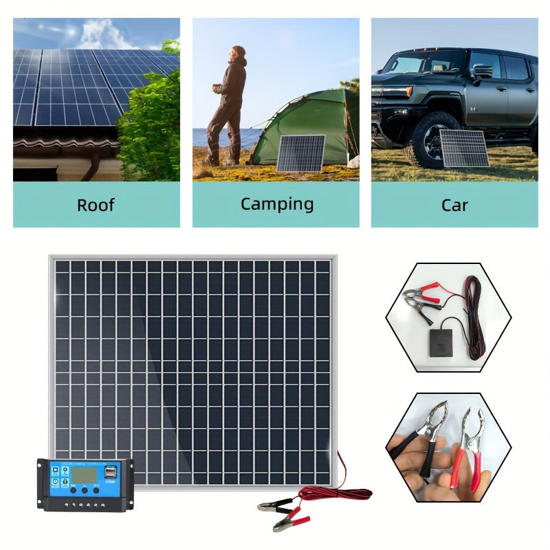 Turli xil qurilmalar va uskunalarni, jumladan, quvvat banklari, transport vositalari, telefonlar, kuzatuv tizimlari va uy hayvonlari uchun quyosh energiyasi paneli to'plami, turli xil boshqaruvchilar bilan. Bo'lishi mumkin.