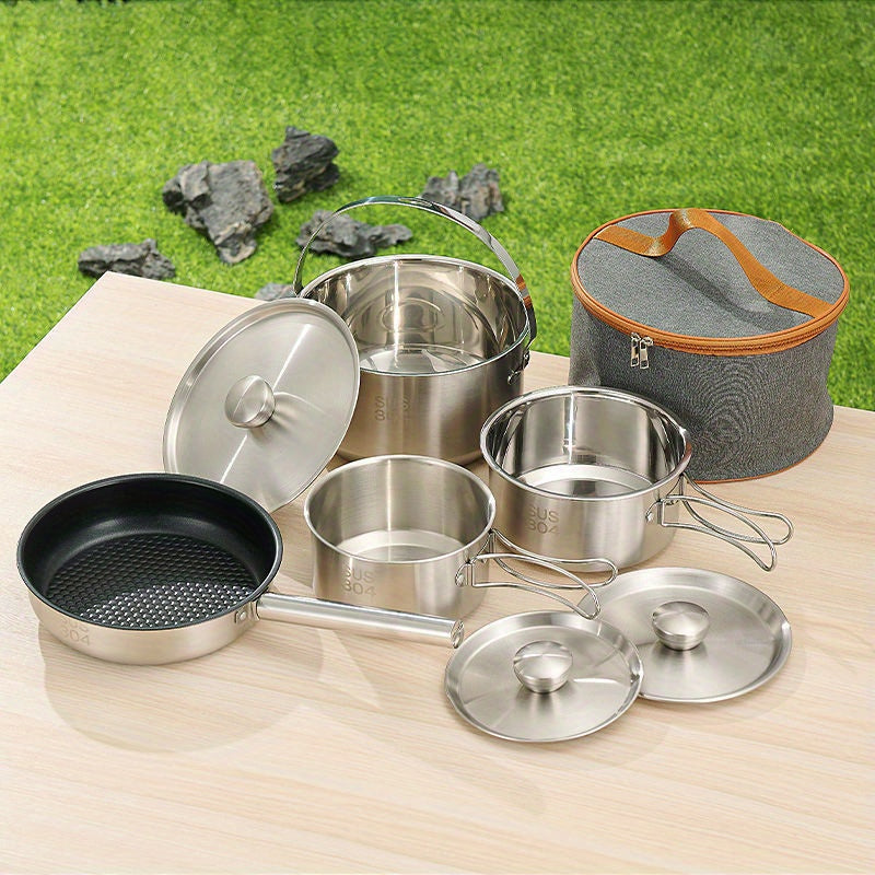 Portativ Noxodirli Temir Pishirish To'plami - Turli Maqsadlar Uchun Tashqi Pishirish To'plami, Osma Qozonlar va Asboblar Kiradi