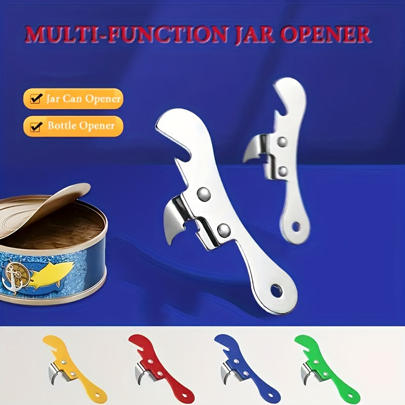 Ko'p ranglarda mavjud bo'lgan, ko'p funksiyali konserva ochuvchi va shisha ochuvchi sifatida ishlaydigan portativ zanglamas po'latdan yasalgan oshxona asbobi.