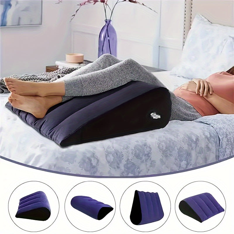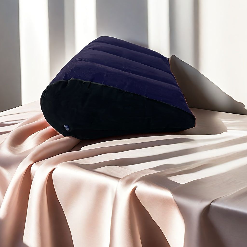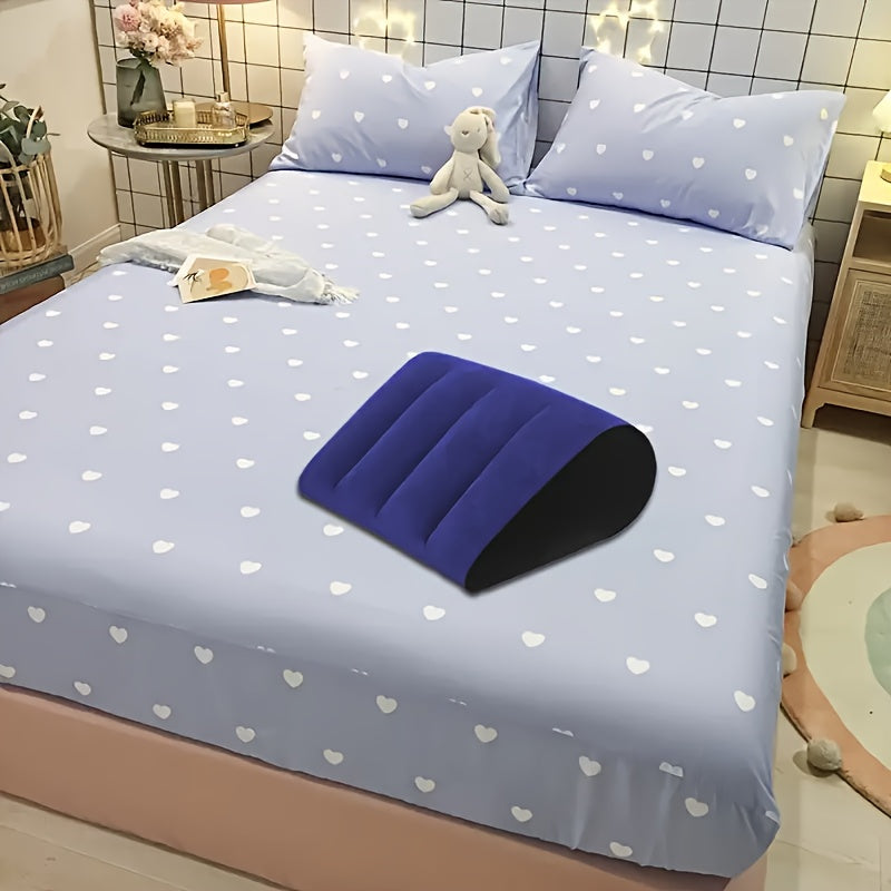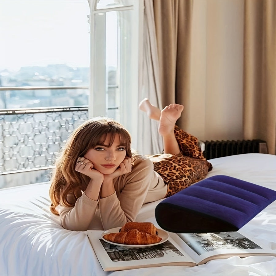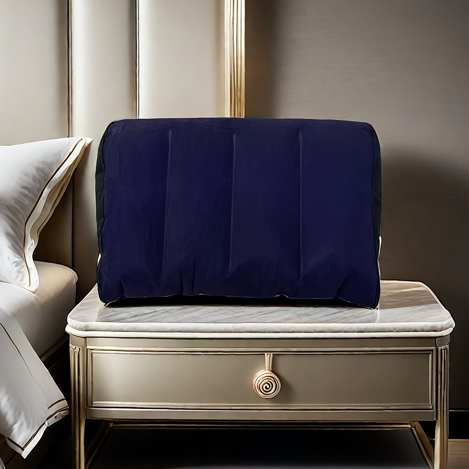Sayohat va tabiatga chiqish uchun ko‘chma yostiq, ko‘k rangli to‘qilgan mato bilan yostiqcha