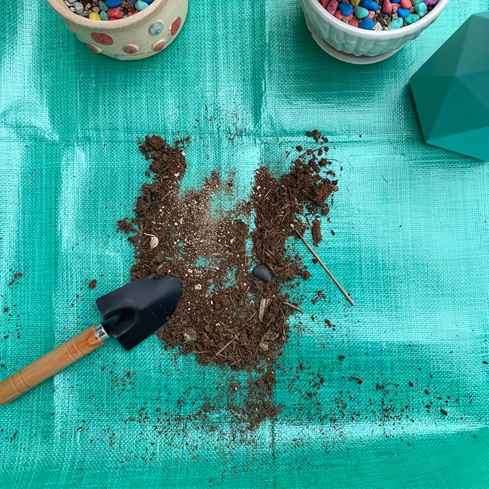 Ichki o'simliklarni qayta ekish uchun portativ suv o'tkazmaydigan mat, sukulentlar va bog'dorchilik tuprog'ini o'zgartirish uchun ideal. Oson saqlash uchun egiluvchan va kvadrat dizayn.