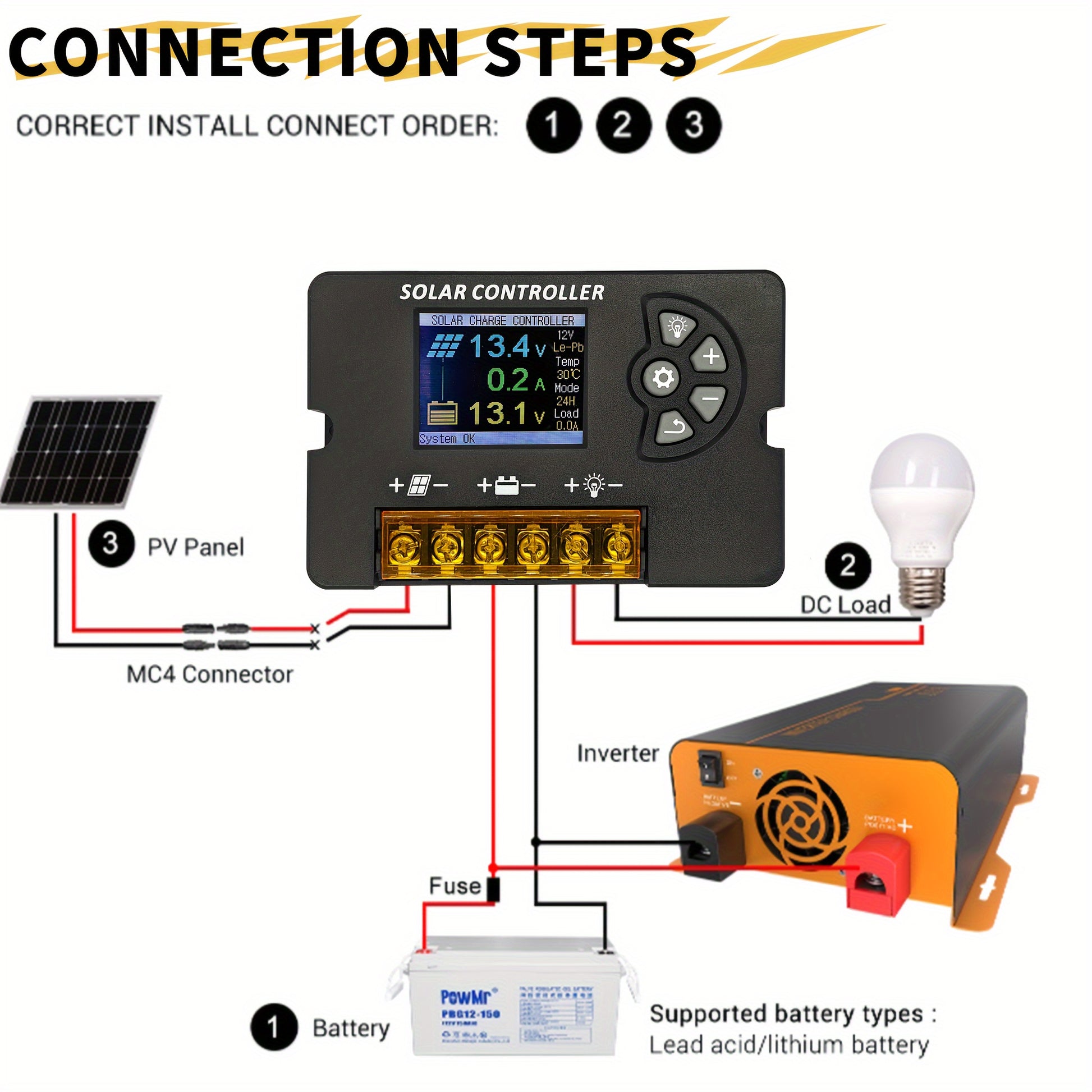 POWLSOJX quyosh zaryad nazoratchisi, LCD displey bilan, sozlanadigan PWM, 30A gacha panel quvvatini qo'llab-quvvatlaydi, batareyani zaryad qilish va ochiq energiya tizimlari uchun ideal.