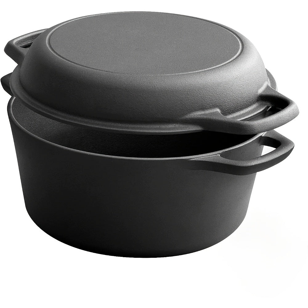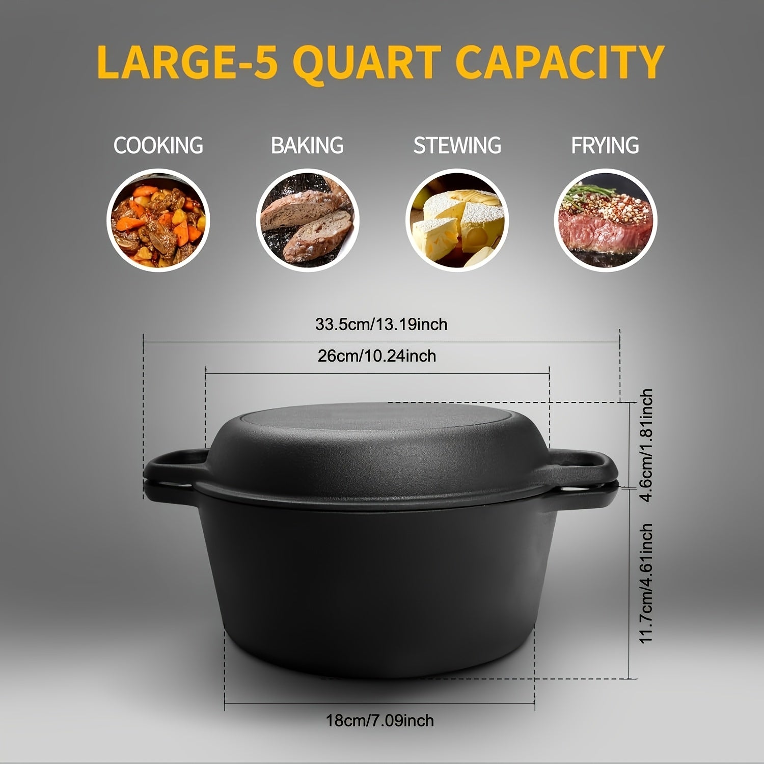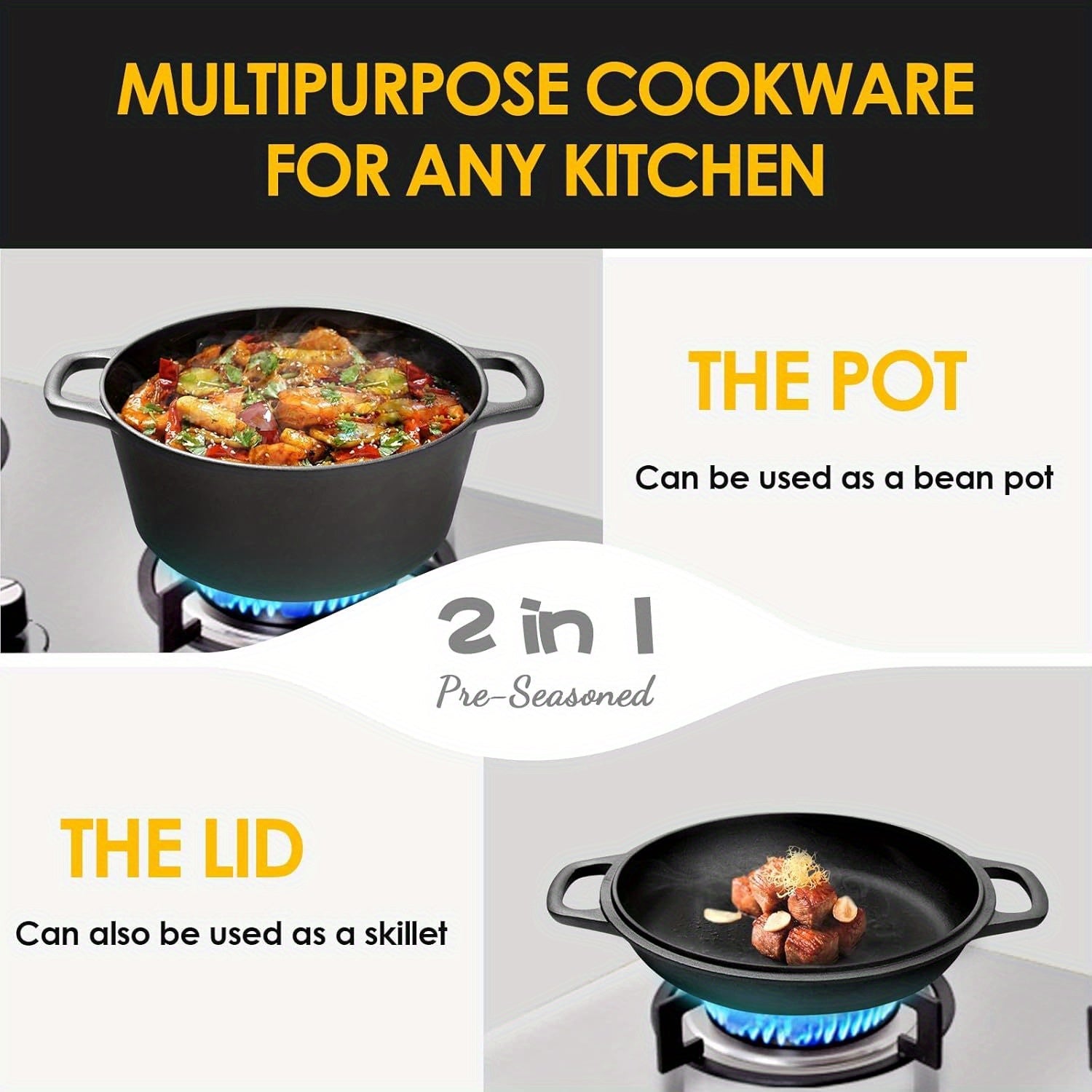 Oldindan tayyorlangan temir qozon to'plami, qopqoq bilan - Oson ushlash uchun ikki qo'l bilan - Pishirish, qovurish, sayohat va BBQ uchun mukammal - 5 kvart sig'im - Ko'p funksiyali 2-in-1 pishirish to'plami