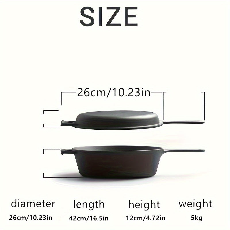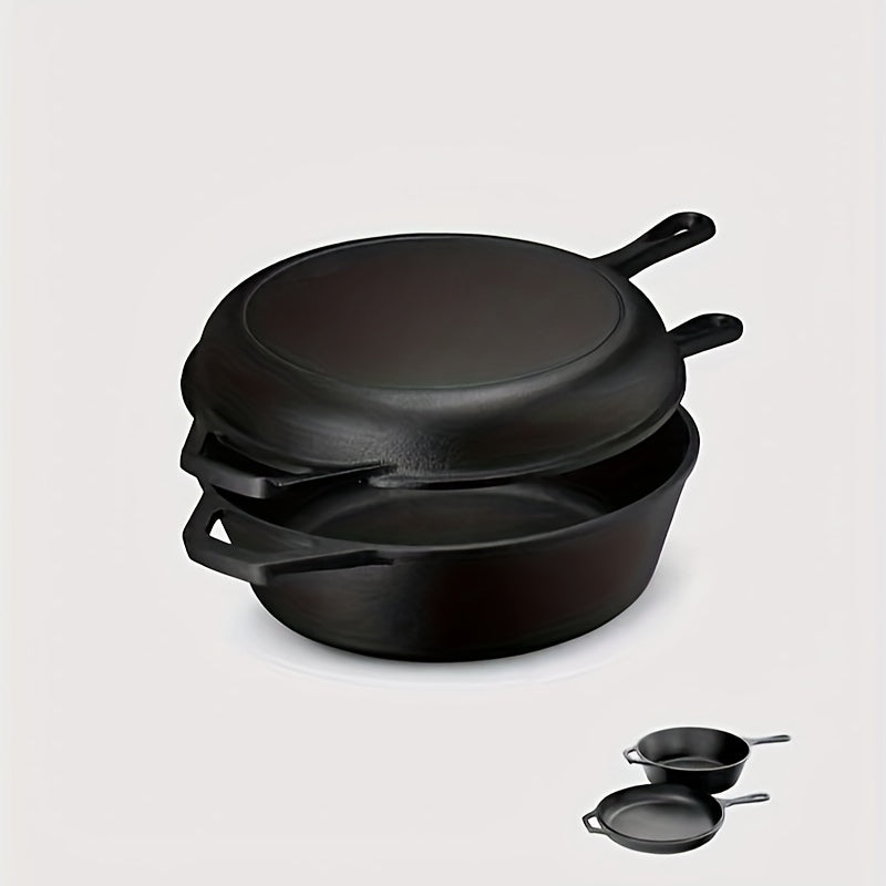 Induksion pechka bilan mos keladigan oldindan tayyorlangan ikki tomonlama yopishqoq quyma temir qozon to'plami - mustahkam oshxona qozonlari va qozonlar uchun ko'p funksiyali 2-in-1 pishirish to'plami