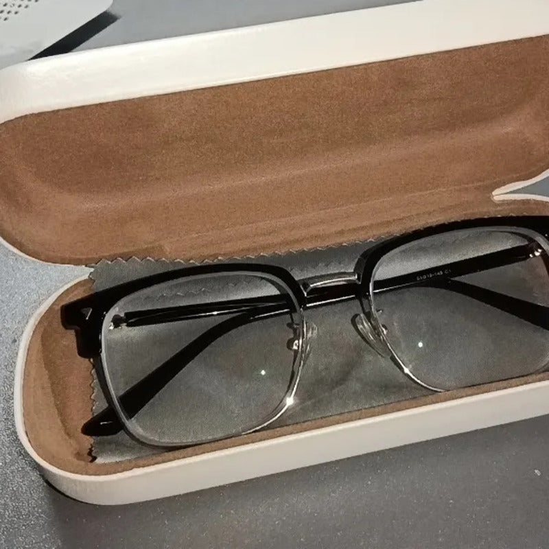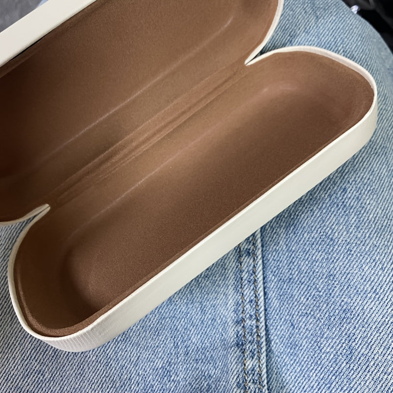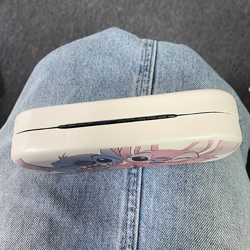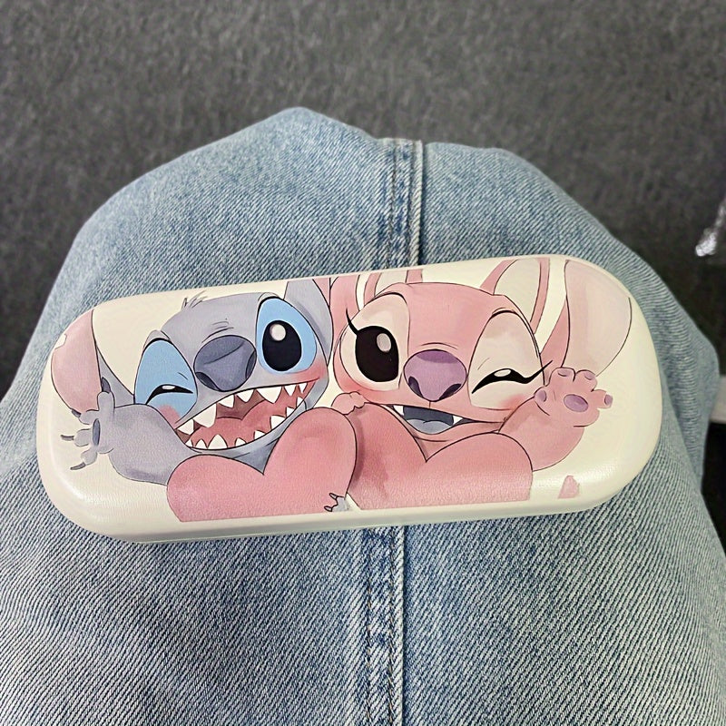 Disneyning Stitch va Angel juftligi tasvirlangan premium krem faux teridan yasalgan ko'zoynaklar uchun ko'zoynak qutisi. Myopiya uchun portativ saqlash qutisi faux teri materialidan.
