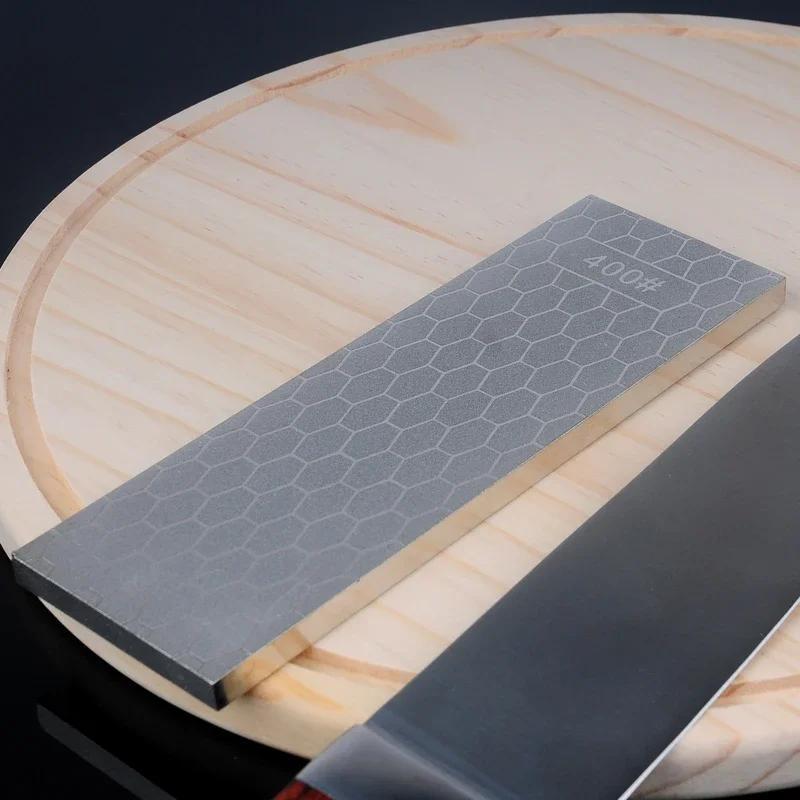 Olmos pichoqni qirqish uchun ikki tomonlama, 400/1000 qumli, sirpanmaydigan asosli oshxona asbobi