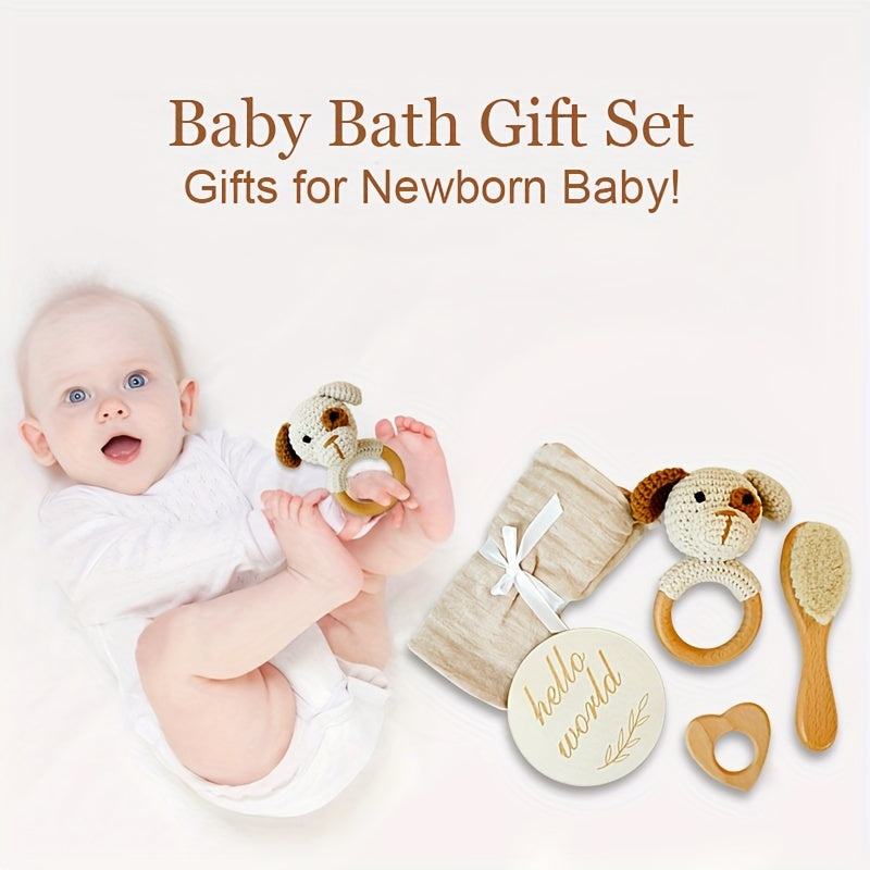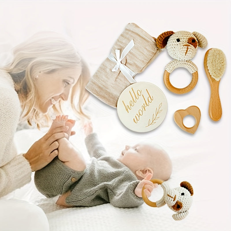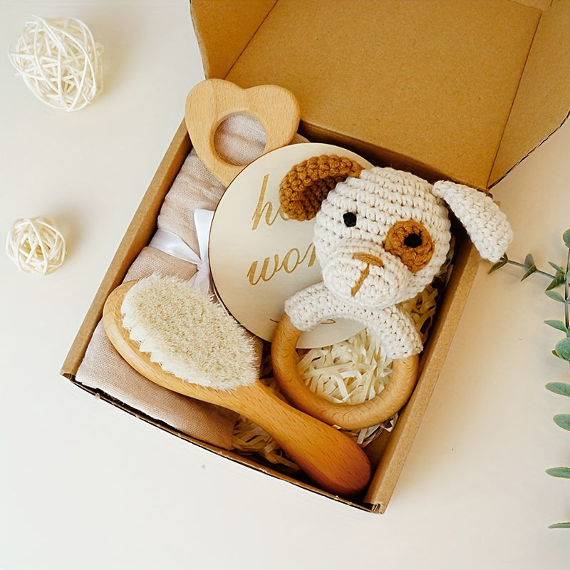 Chaqqaloq it chaqaloq uchun to'plam, xomashyo bilan to'qilgan paxta sochiq, qo'y junidan cho'tka, bukli daraxtdan yurak shaklidagi o'yinchoq