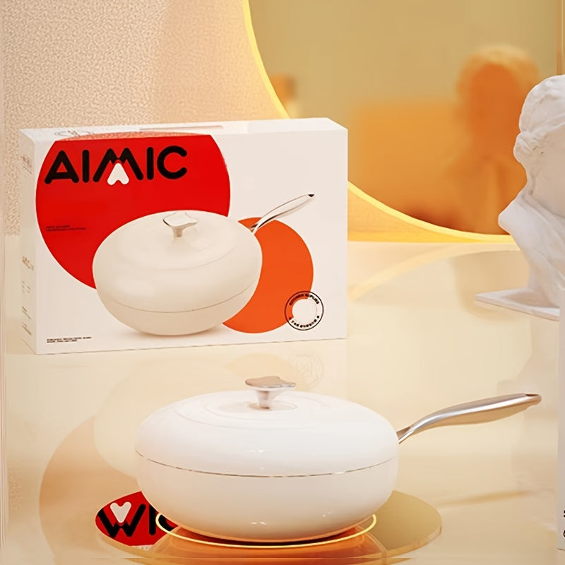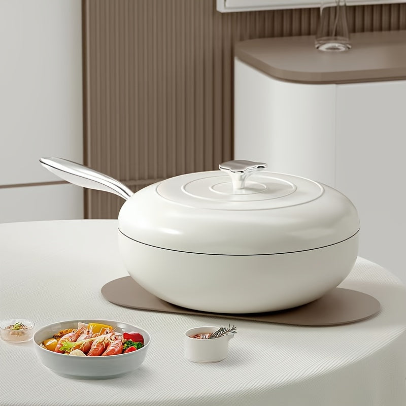 Premium Non-Stick Cast Iron Wok with Lid in Chinese Red Gift Box Set - Electric va Gaz pechlari uchun mos - Uyda pishirish uchun mukammal - 1 dona