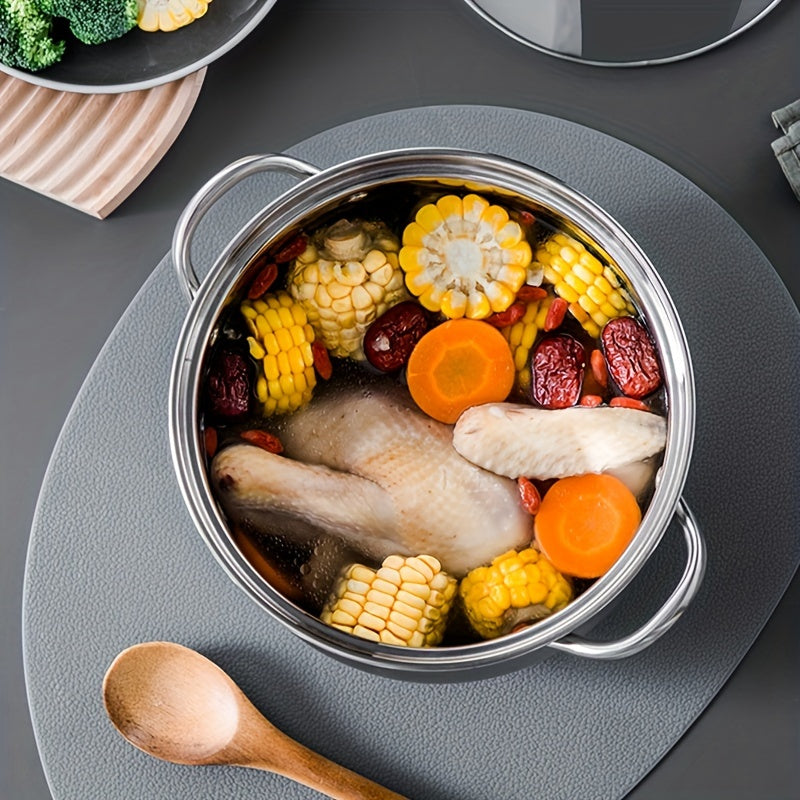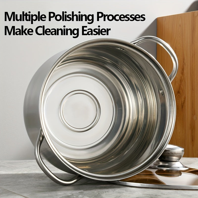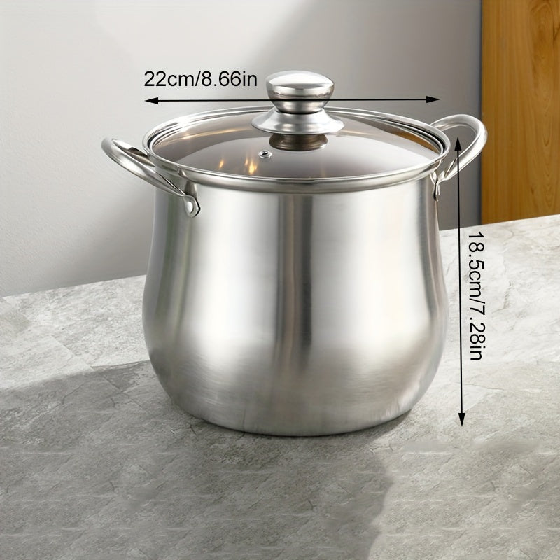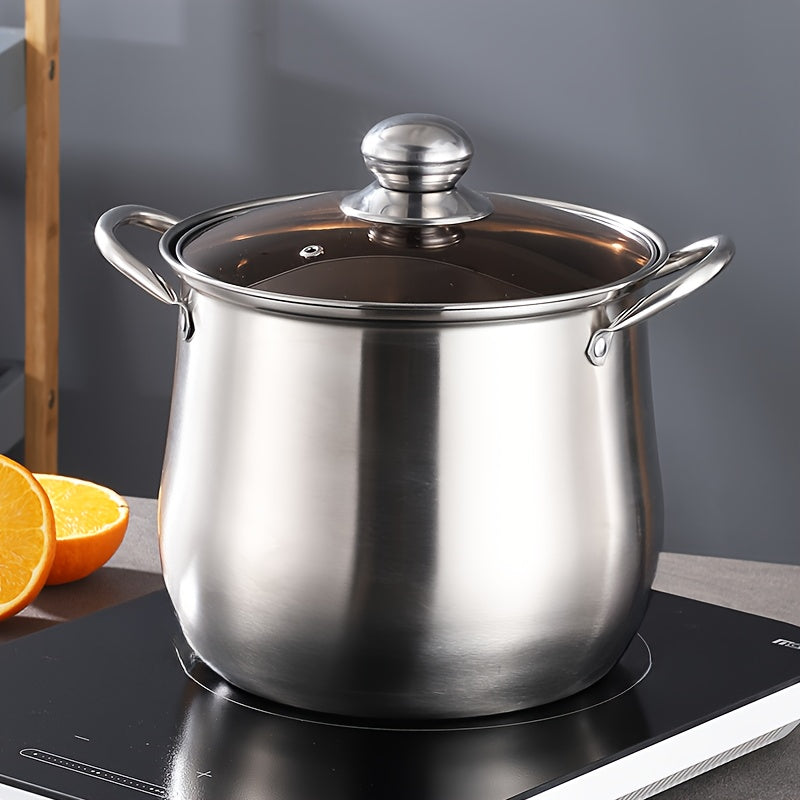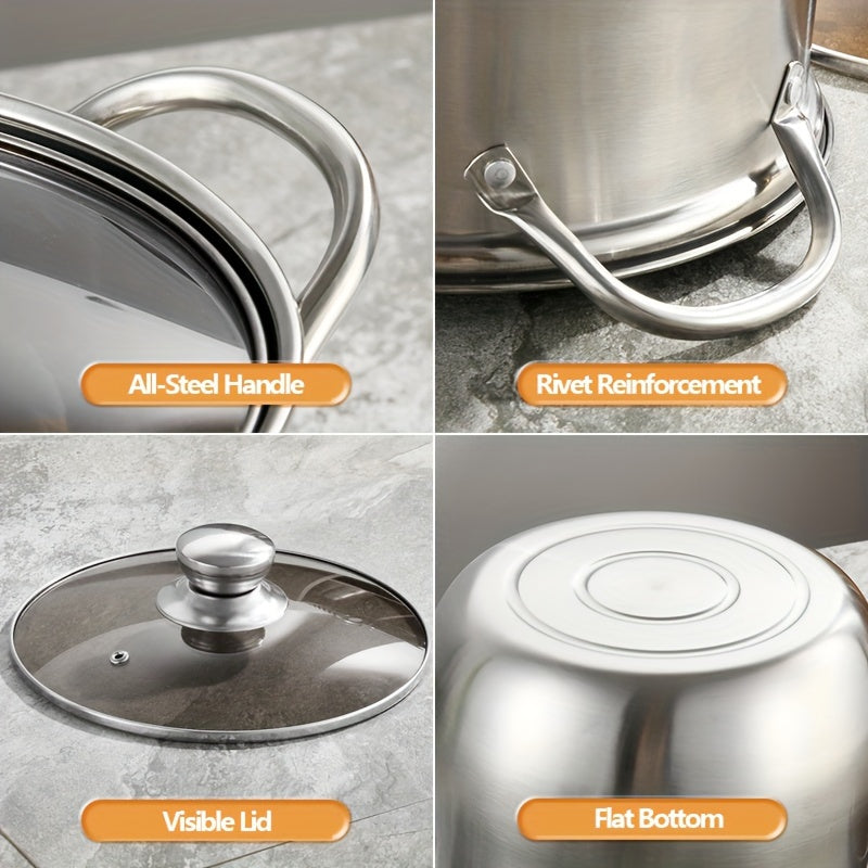 Premium zanglamas po'latdan yasalgan sho'rva qozoni shaffof shisha qopqoq bilan jihozlangan - mustahkam va ko'tarilgan, qaynatmalar va sho'rvalar tayyorlash uchun ko'p funksiyali, gaz va induksion plitalar uchun mos, uy va tijorat oshxonalarida mukammal.