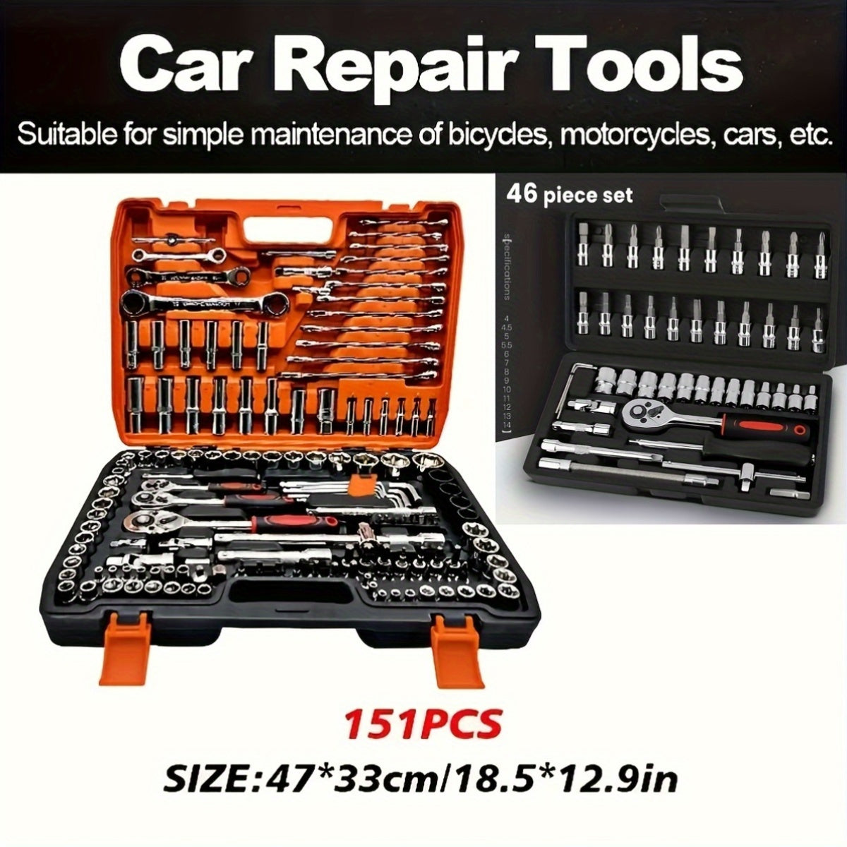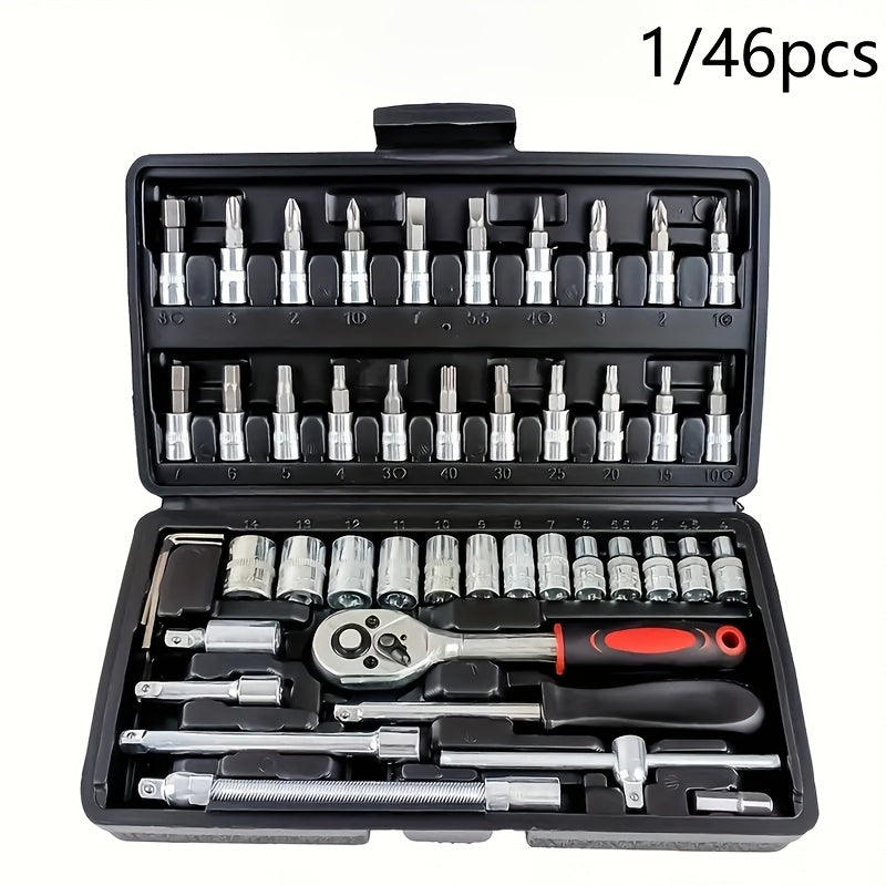 Avtomobil ta'mirlash uchun asboblar to'plami, 46 ta element, portativ, bardoshli, vintli kalit to'plami