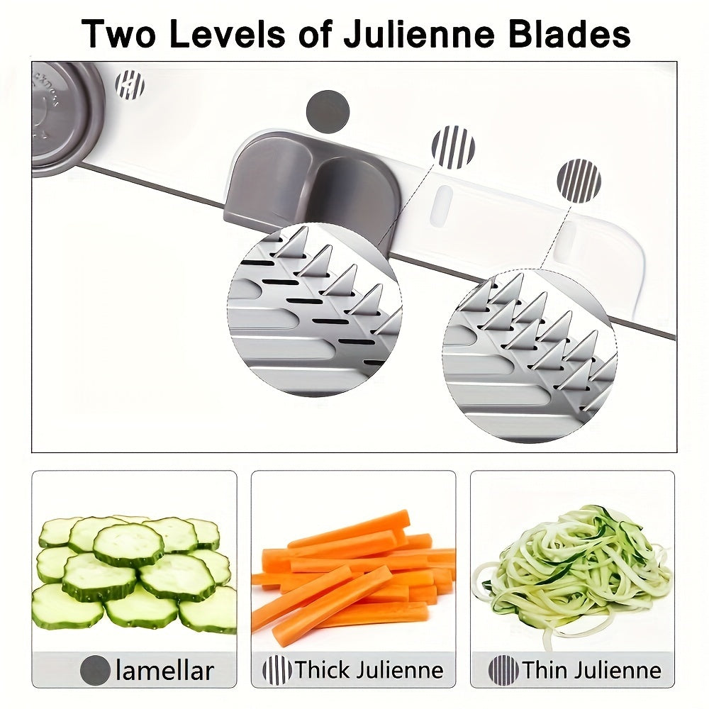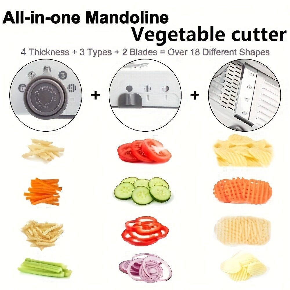 Professional darajadagi zanglamaydigan po'lat mandolin bo'laklagich, 18 xil o'lchamga sozlanishi mumkin, piyoz va kartoshka kabi sabzavotlarni bo'laklash uchun ideal. Xavfsiz va oson ishlatiladigan, bu oshxona aksessuari har qanday oshpaz uchun zarur.