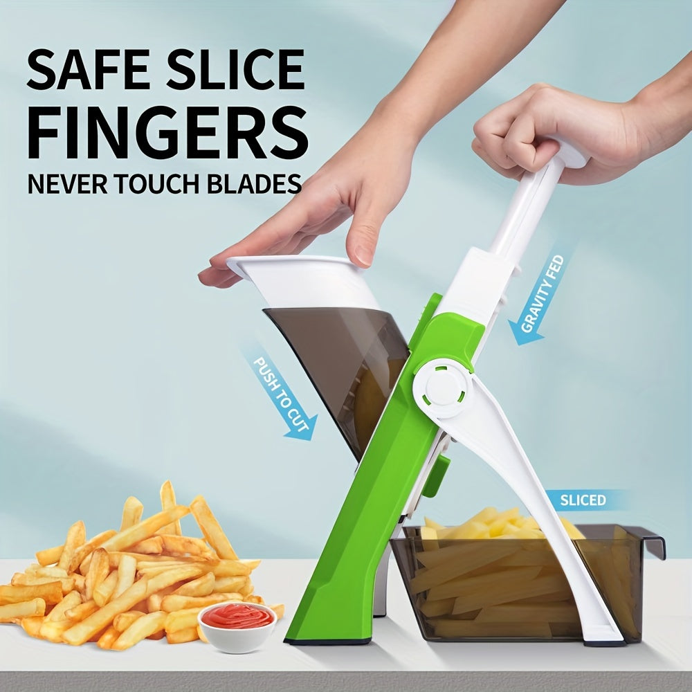 Oshxona mandolin kesgich, sozlanadigan qalinlik va xavfsiz barmoq himoyachisi bilan sabzavotlar va kartoshkalar uchun