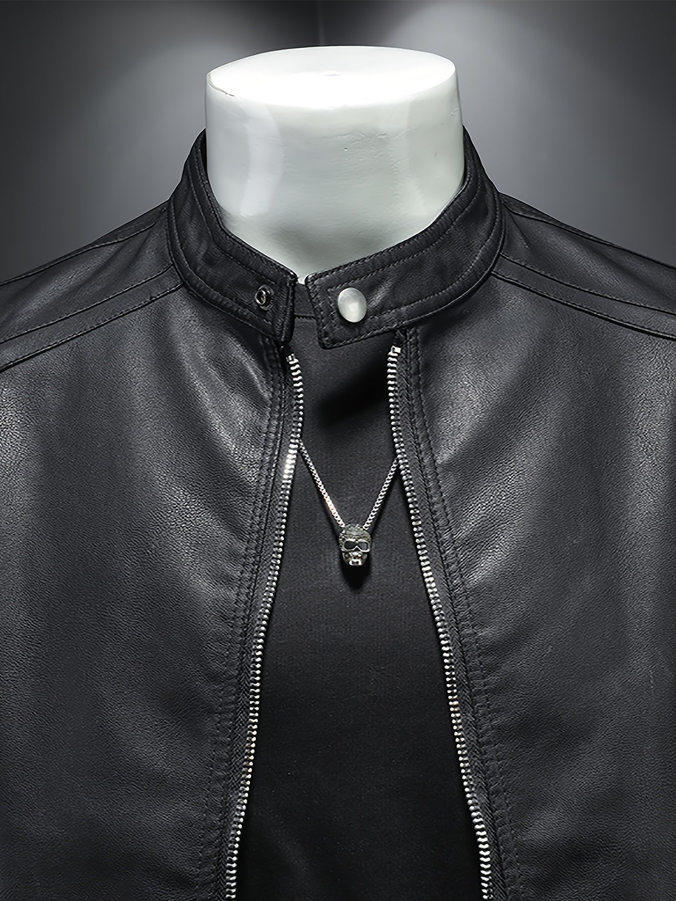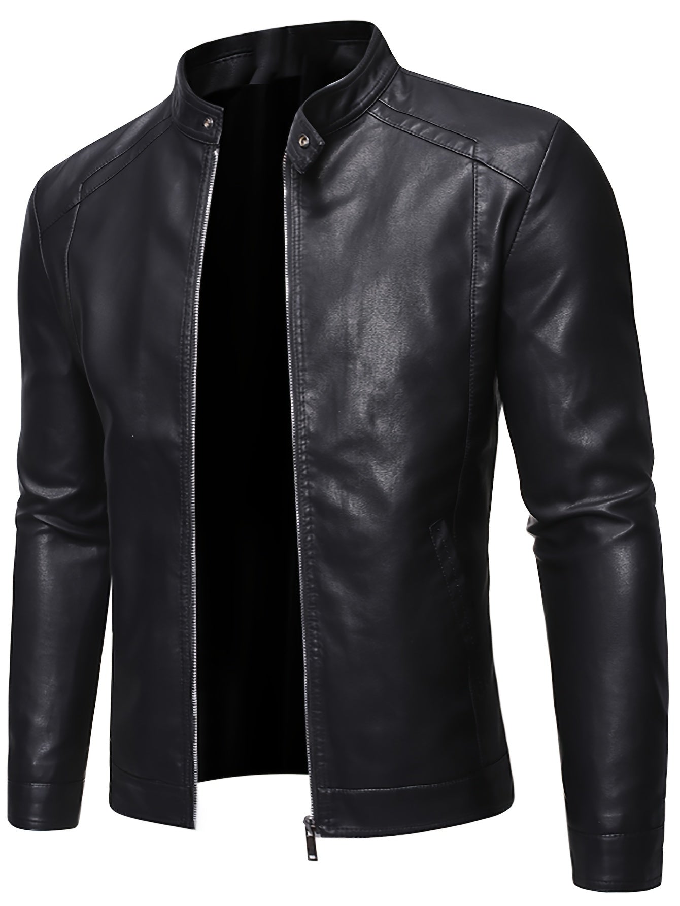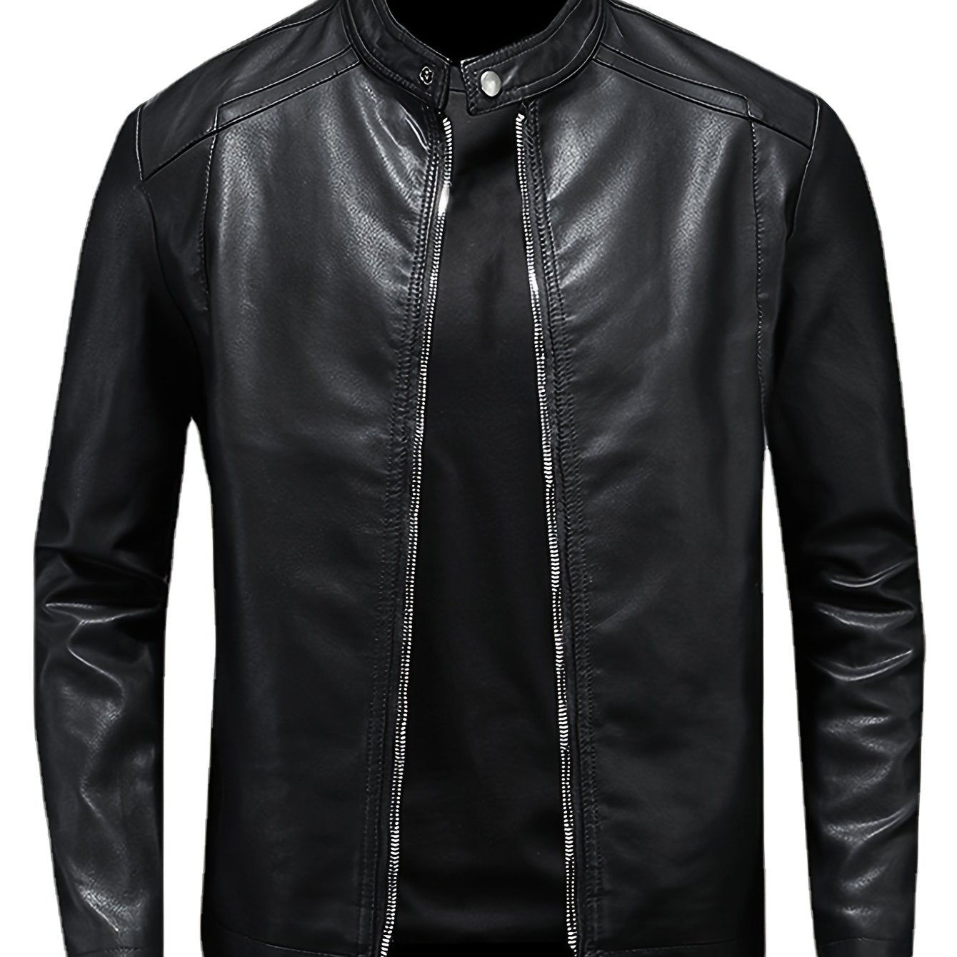 Erkaklar uchun PU charm kurtka, turli xil ko'krak va fermuarlik cho'ntaklar bilan, mototsikl uslubida