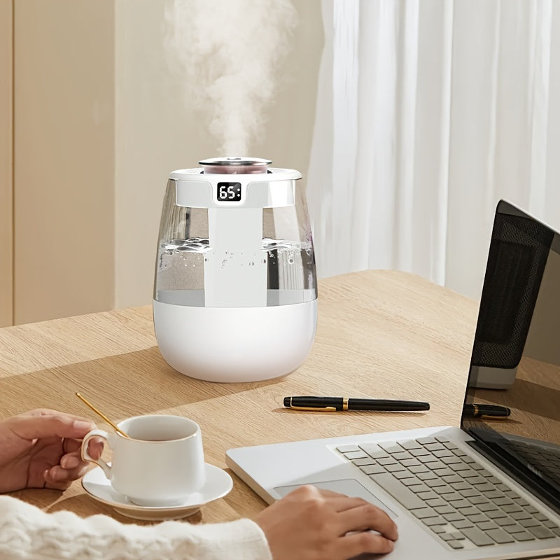 Tinch, portativ ish stoli namlagichi, katta sig'imli bug' bilan, USB va raqamli ko'rsatkich. Qish mavsumida yotoqxona va ish stollari uchun ideal. O'lchovlar: 17.27 X 12.95 sm.