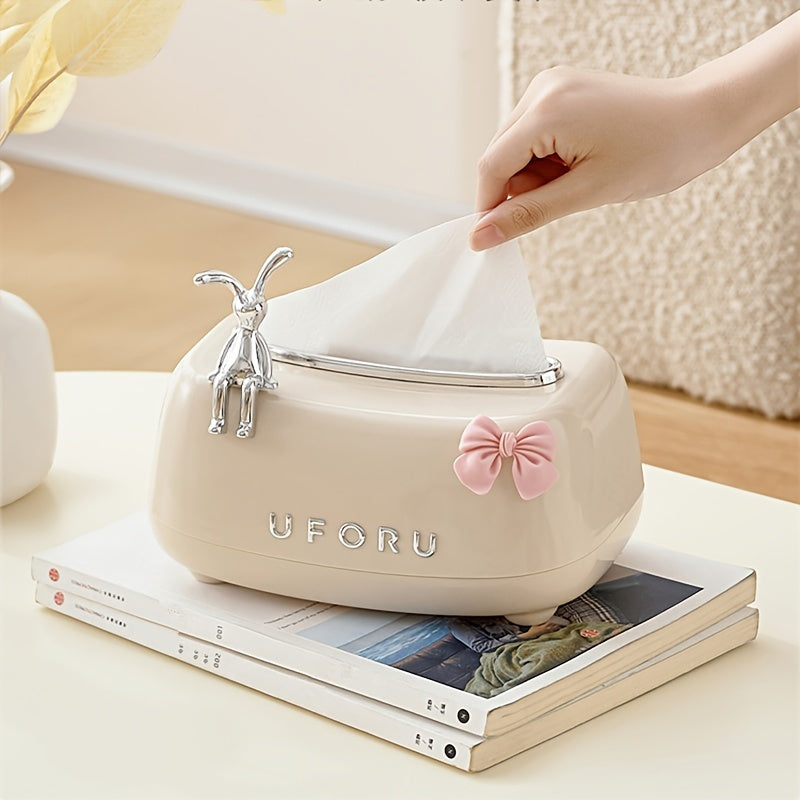 Hojatxona, yashash xonasi yoki yotoqxona uchun quyon dizaynli to'qima qutisi qopqog'i - yoqimli va amaliy uy bezak aksessuari.