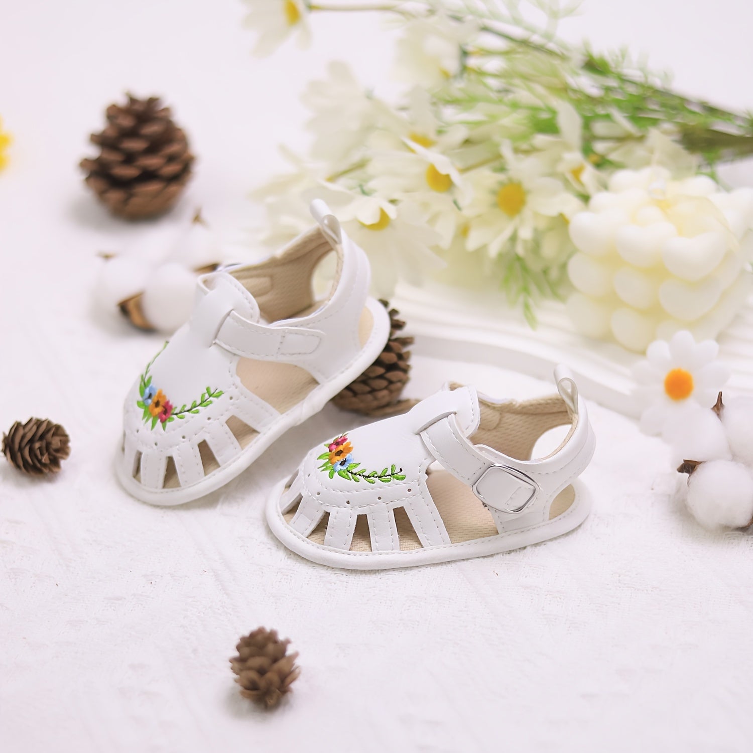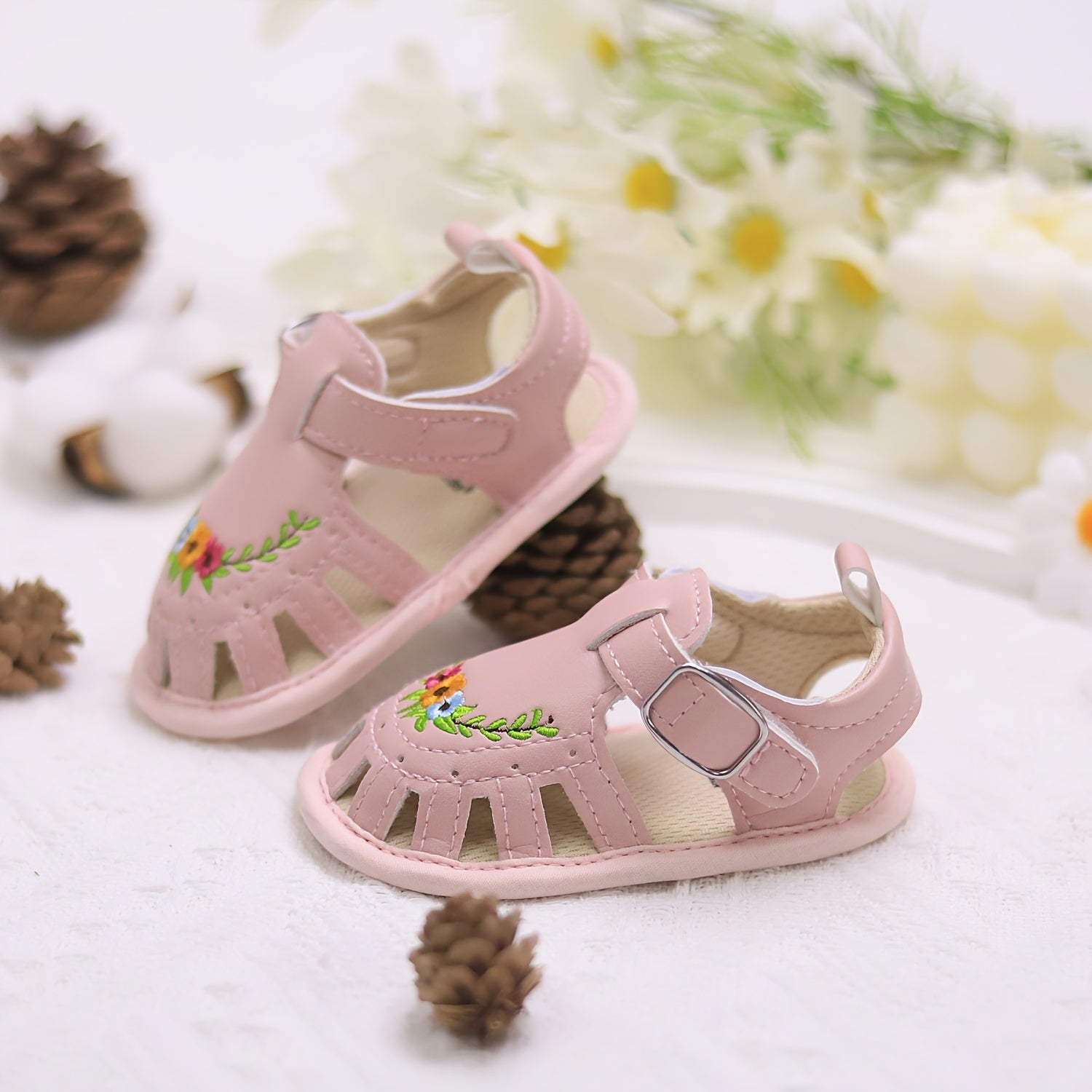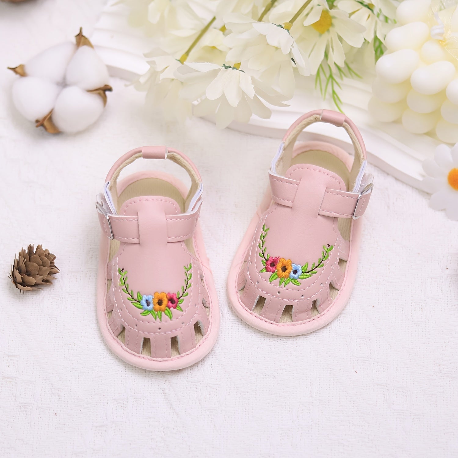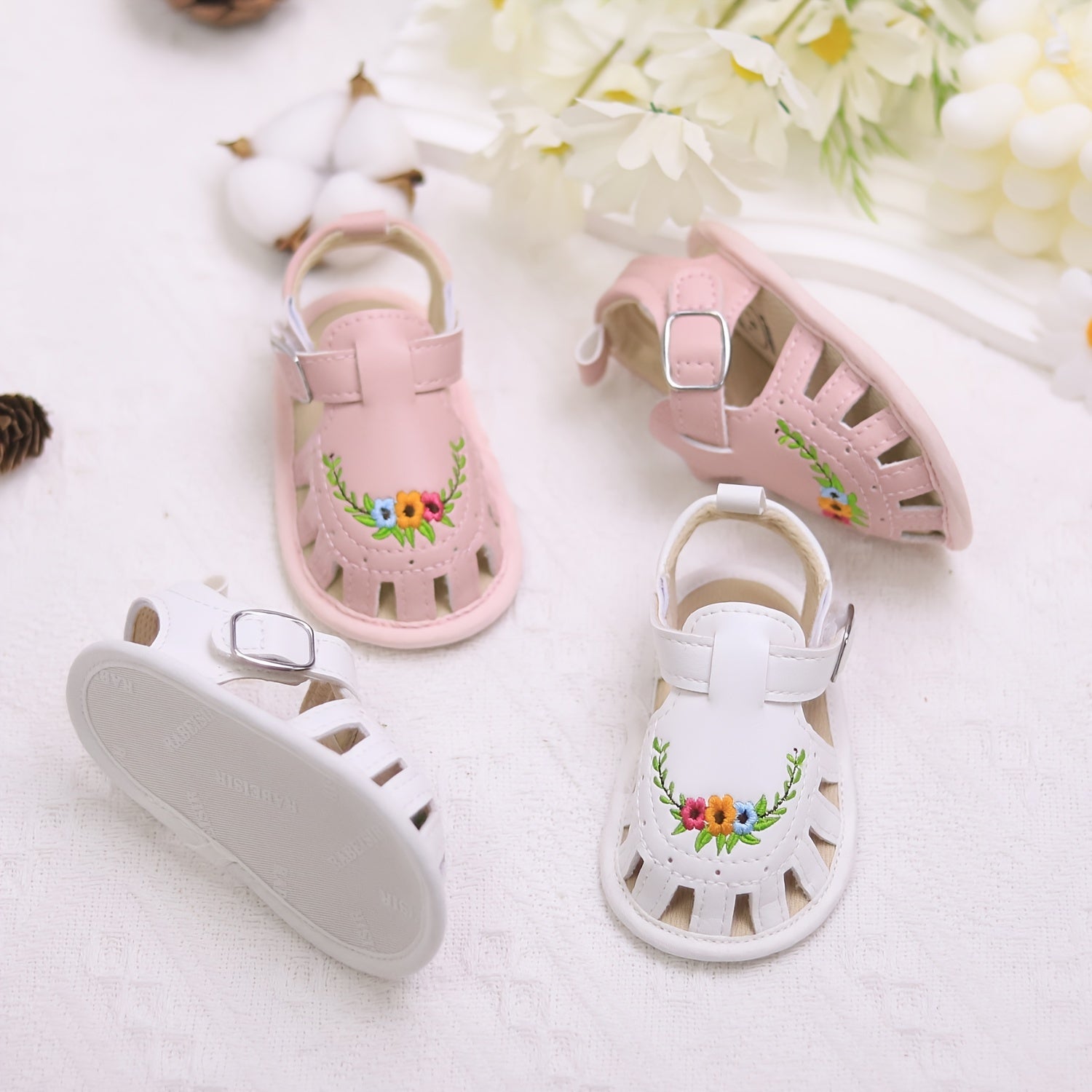 Kichkina qiz bolalar uchun gul naqshli tikilgan sandalki, yumshoq taglik, nafas oladigan, sirpanishga qarshi, bahor va yoz uchun