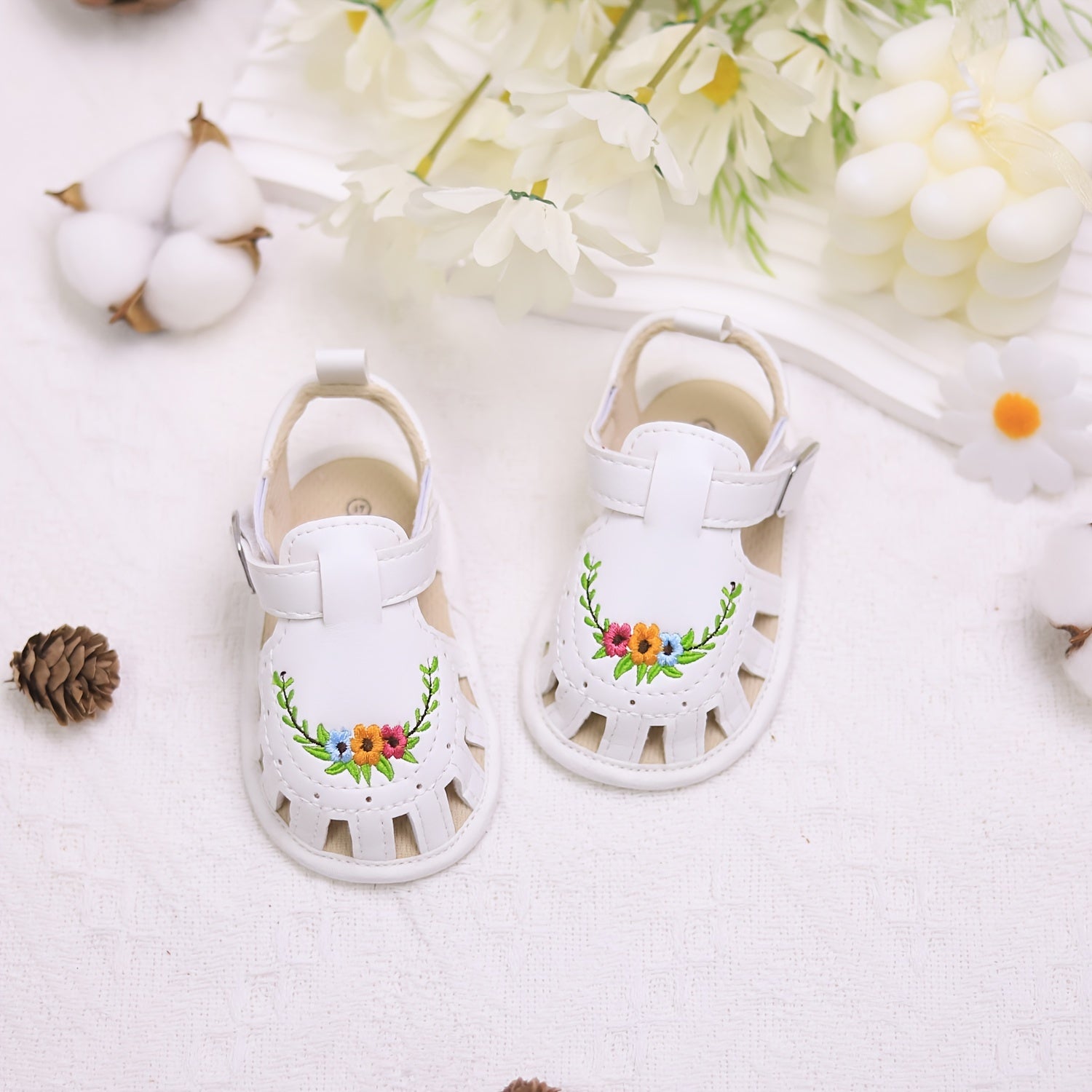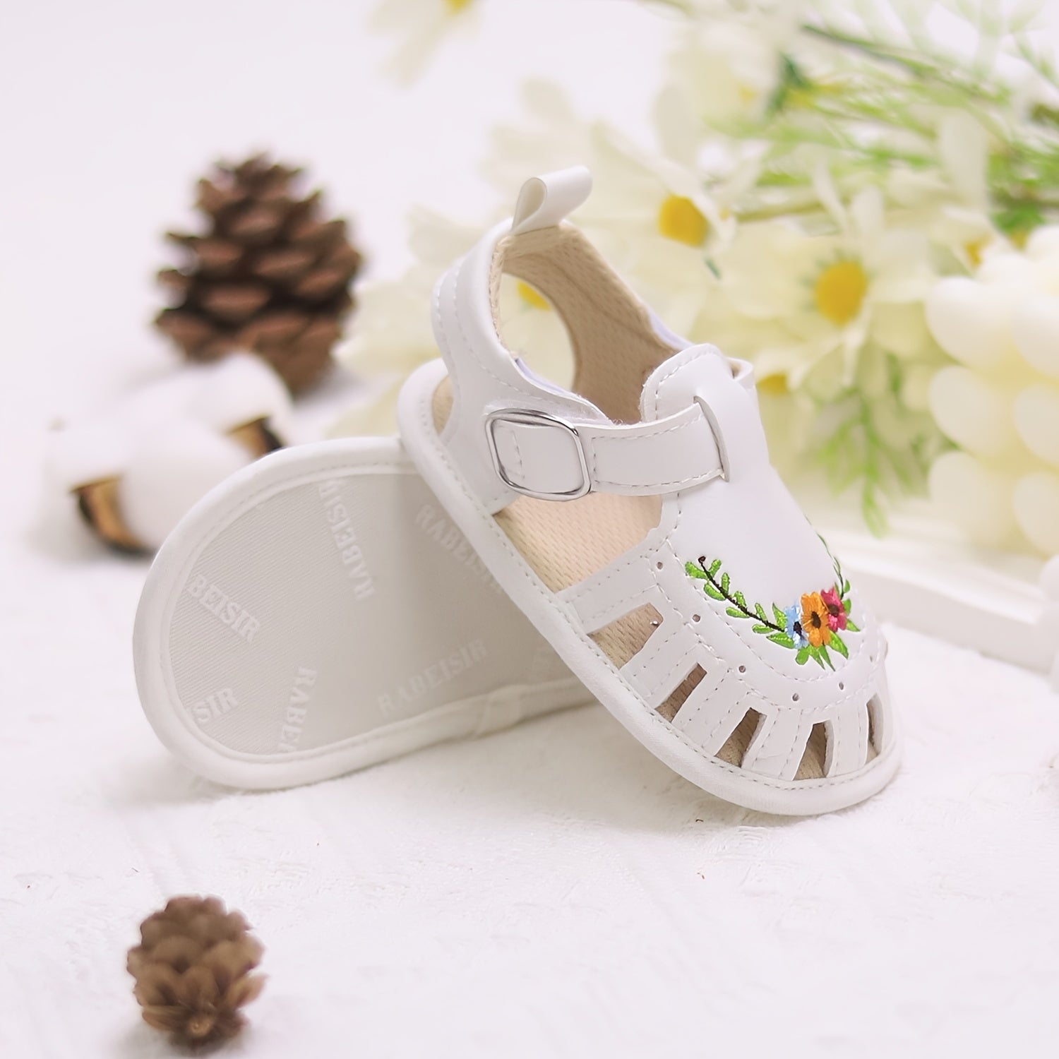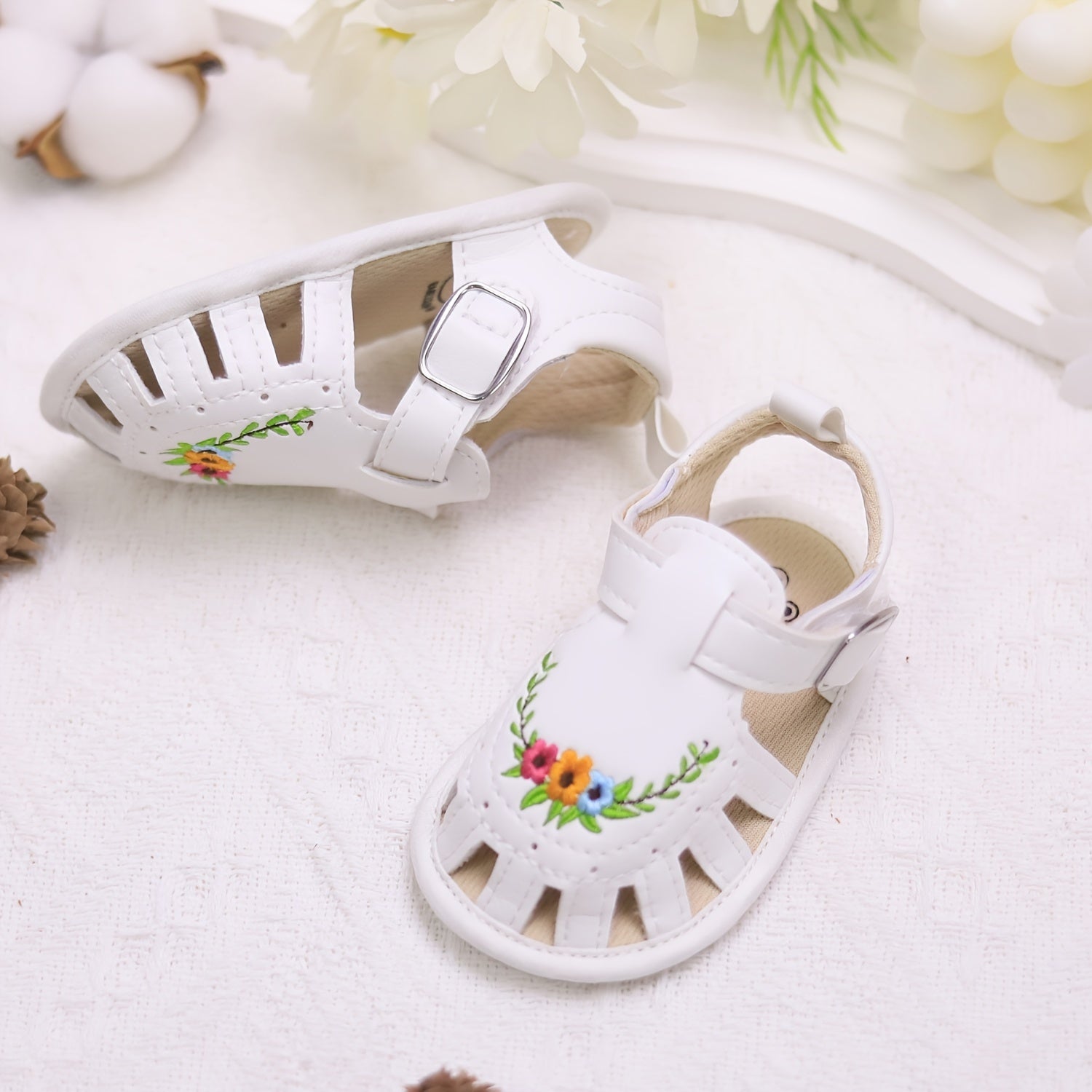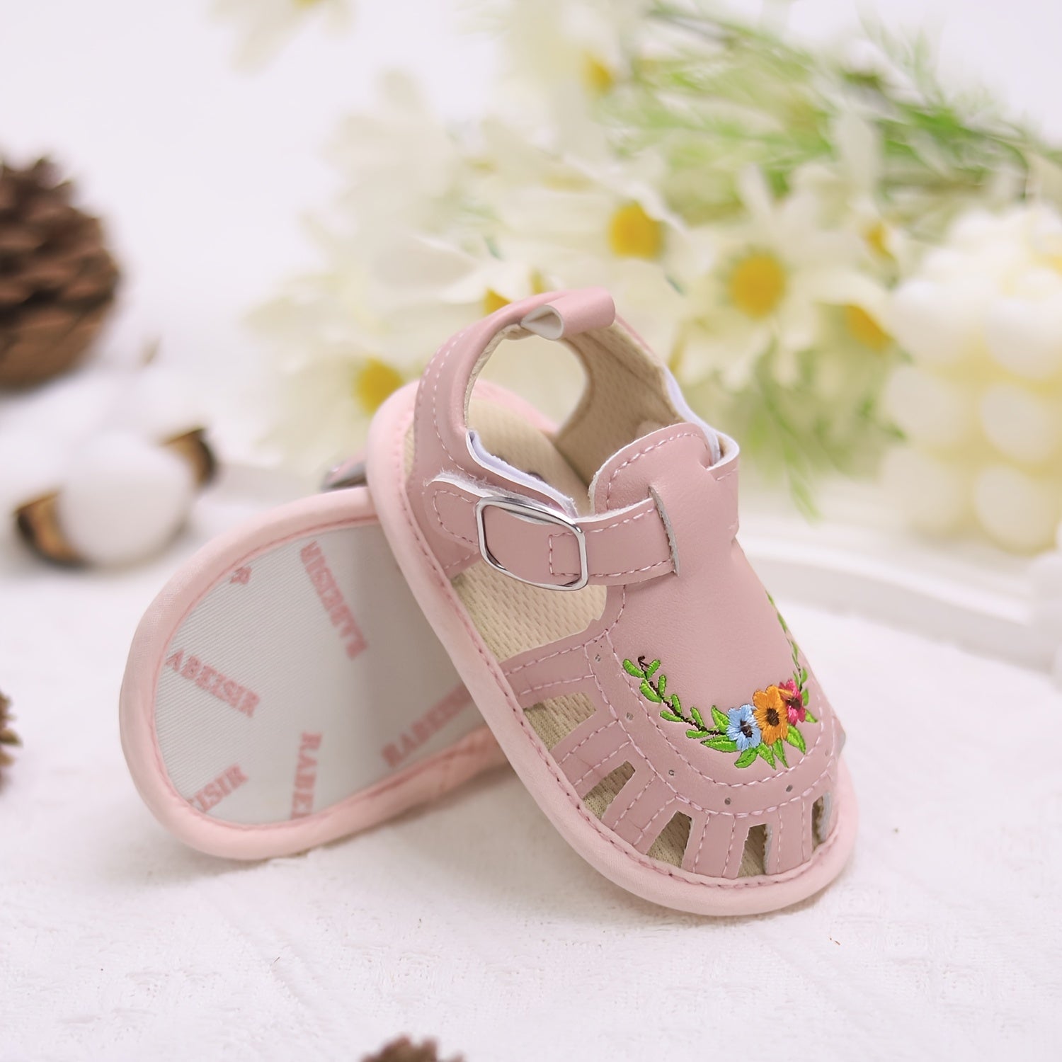Kichkina qiz bolalar uchun gul naqshli tikilgan sandalki, yumshoq taglik, nafas oladigan, sirpanishga qarshi, bahor va yoz uchun
