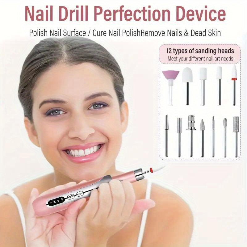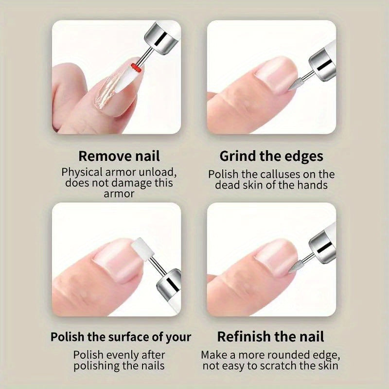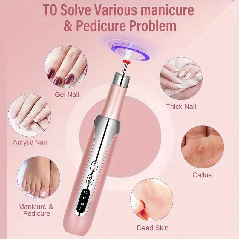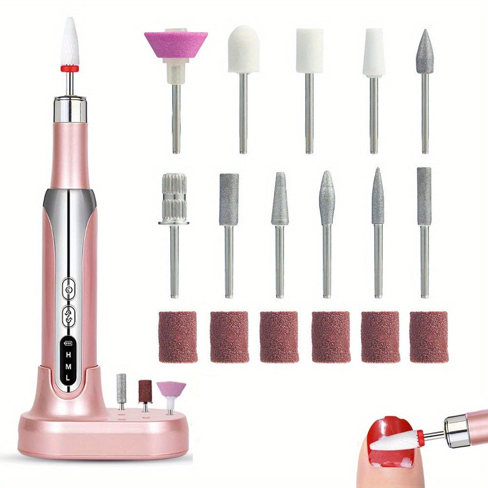 USB zaryadlash va simsiz dizayni bilan qayta zaryadlanuvchi elektr tirnoq burg'ulash to'plami, manikur, pedikur, akril va gel tirnoqlar uchun mos keladi.