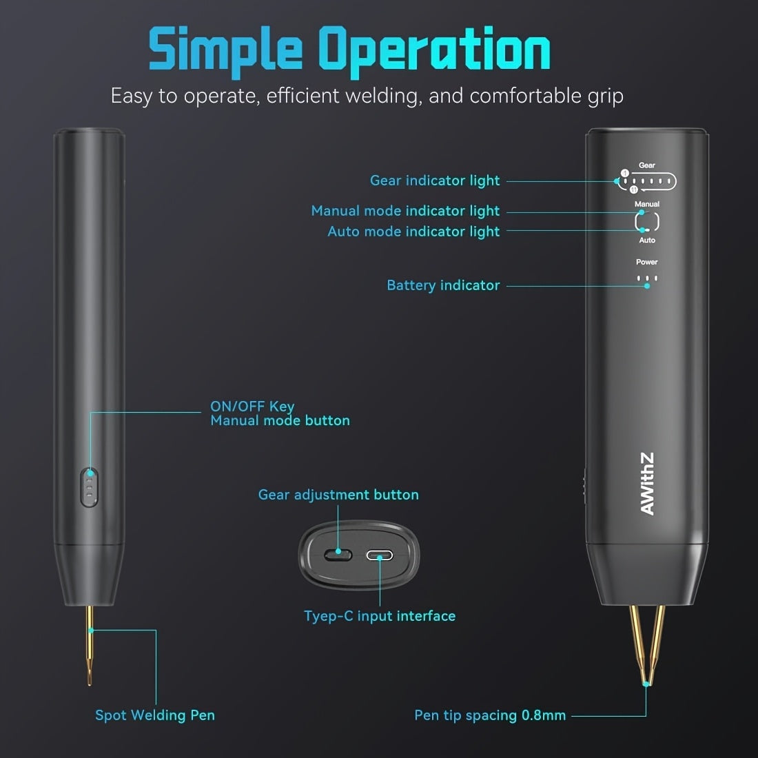 11 ta sozlanadigan darajaga ega qayta zaryadlanadigan qo'l bilan ishlov beruvchi nuqta payvandlovchi, DIY 18650 batareyalari va elektron loyihalar uchun ideal. Avtomatik va qo'lda rejimlar uchun mos, elektronika uchun mukammal.