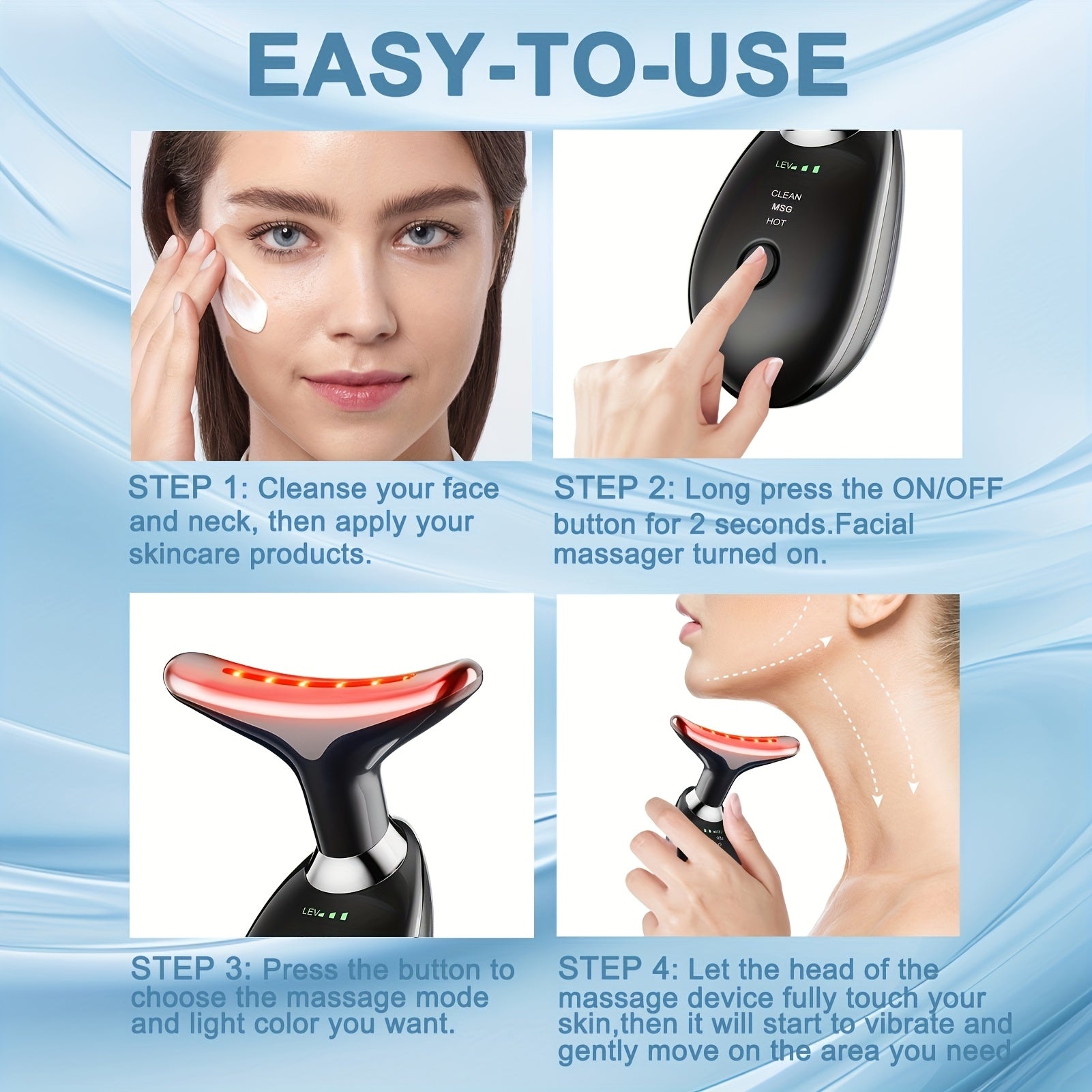 Qayta zaryadlanadigan vibratsiyali yuz va bo'yin massajeri, isitish funksiyasi bilan - uyda foydalanish uchun ixcham, ko'chma teri parvarishi qurilmasi, ayollar uchun ideal go'zallik sovg'asi.
